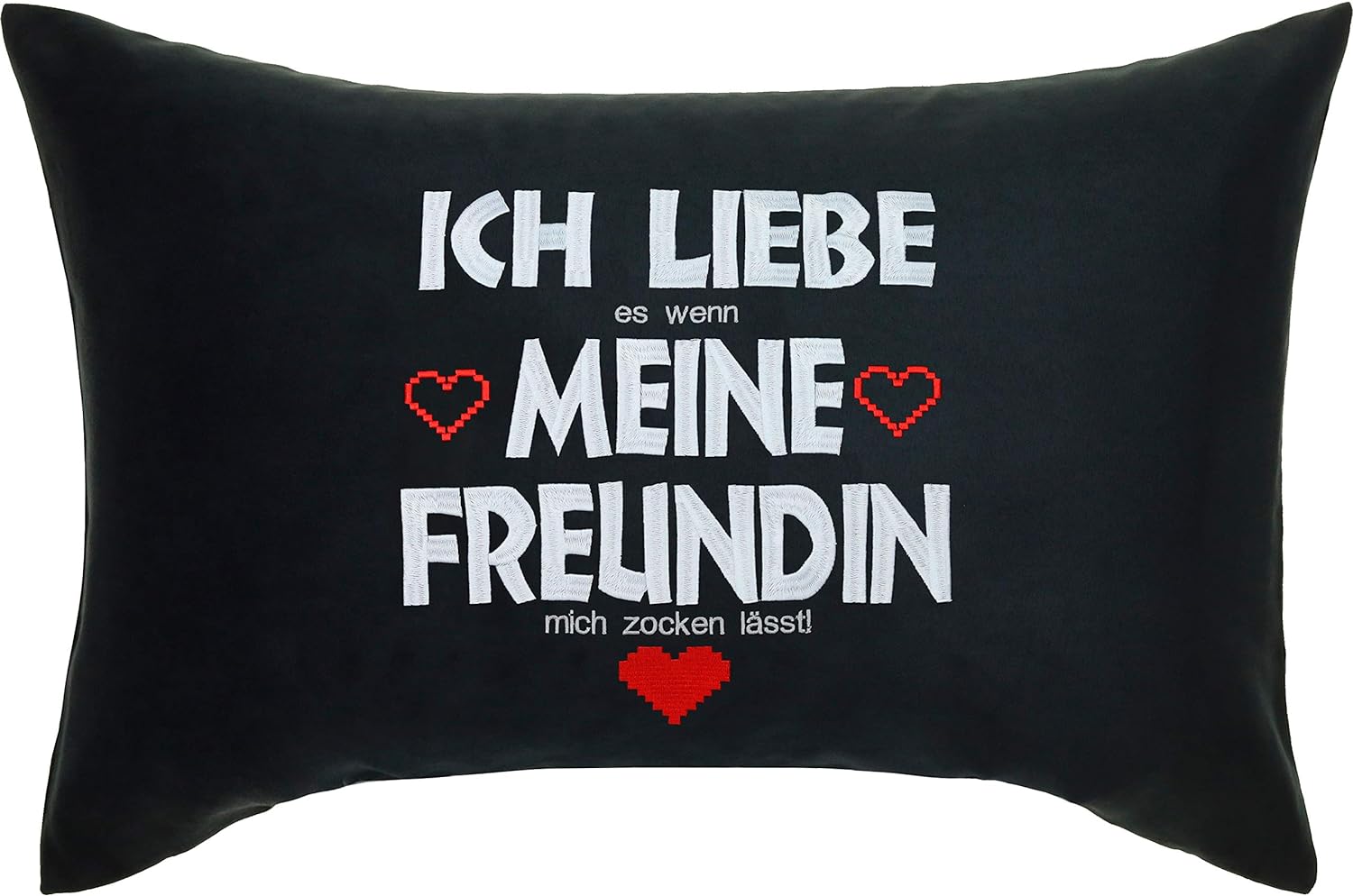 EXPRESS-STICKEREI Ich Liebe es wenn Meine Freundin Mich zocken lässt Premium Kissen mit Bezug & Spru