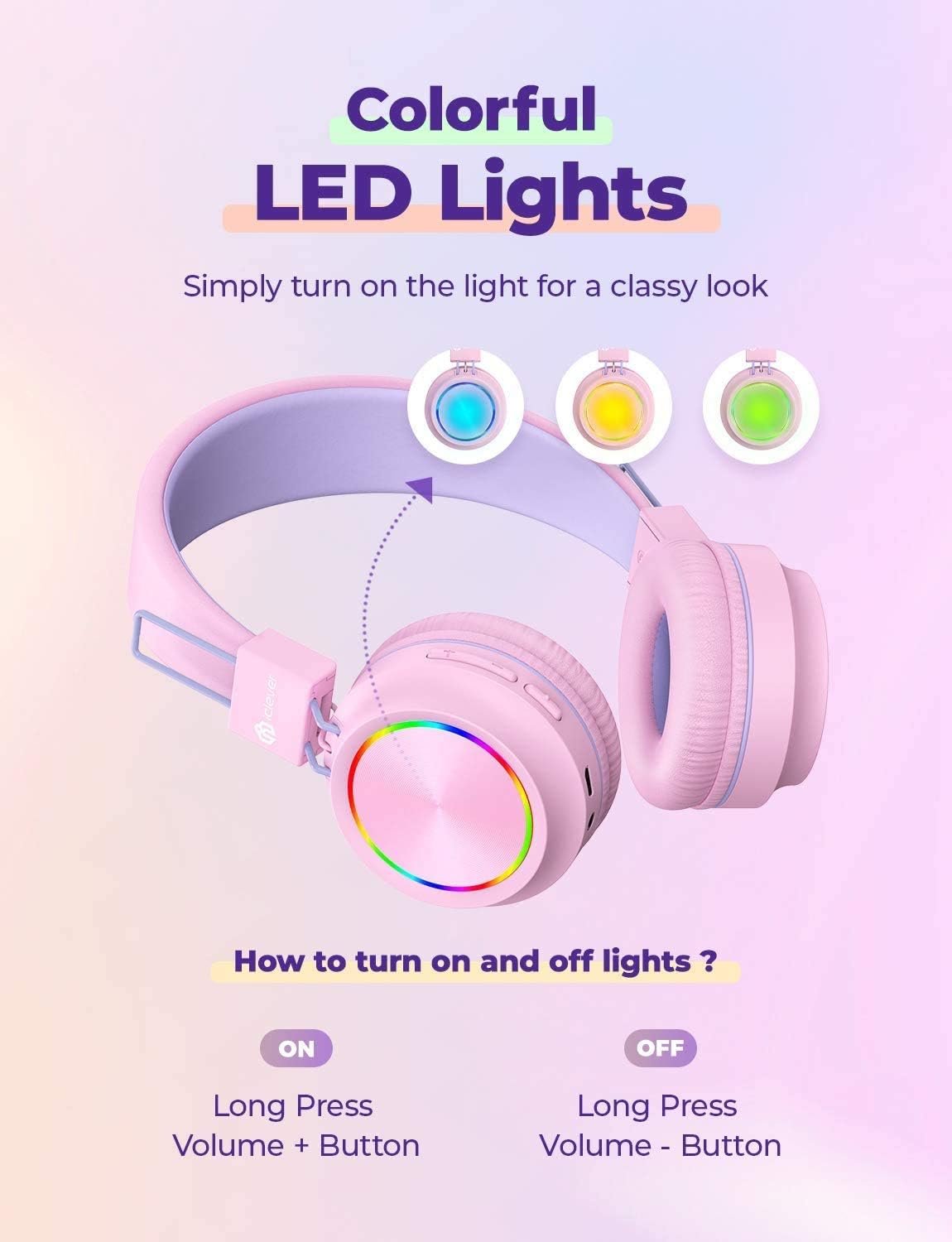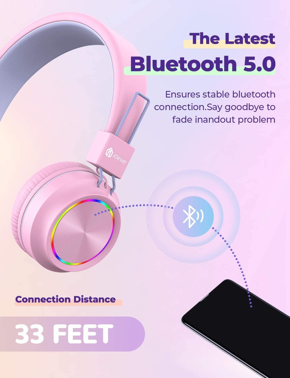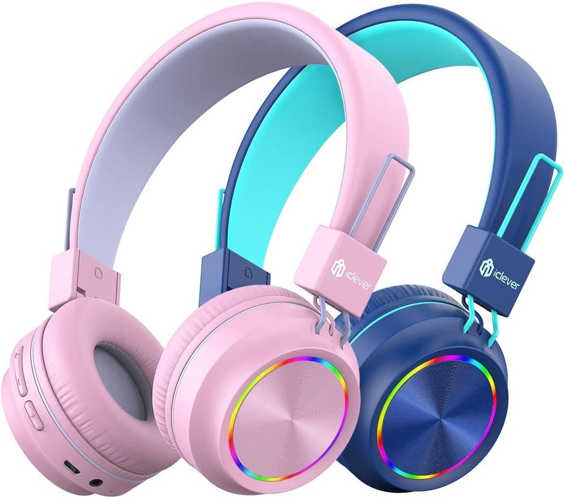 - 【Stereo-Sound mit Kopfhörer Leuchten】: Sieht cool aus, klingt grossartig! Zusätzlich zu den 40-mm-Treibern, die den iClever Kinder-Bluetooth-Kopfhörern einen vollen, immersiven Sound liefern, verfügen sie über eine Reihe von LED-Lichtern, die um