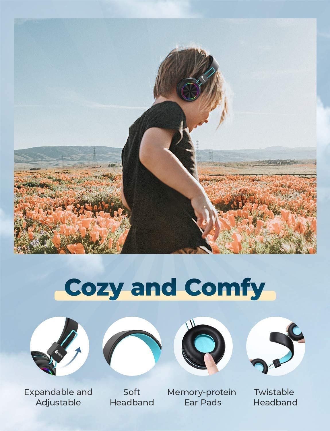 - 【Ganztägiger Komfort】:Komfort ist von grösster Bedeutung für die Erfahrung der iClever Kinder-Kopfhörer, die durch Memory-Schaumstoff-Ohrpolster angereichert sind, weiches und atmungsaktives Material, das das Hören viel besser macht. Um Ihre