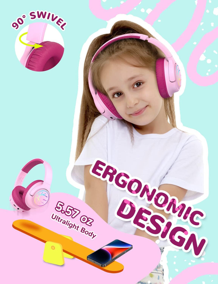 - 【Ergonomic & strapazierfähig】: Mit einem Gewicht von knapp 160 g wurden diese faltbaren kabellosen Kopfhörer für Kinder - speziell für unterwegs - entwickelt! Die drehbaren Over-Ear-Ohrmuscheln sorgen für exakten Sitz und Komfort. Dank ihrer