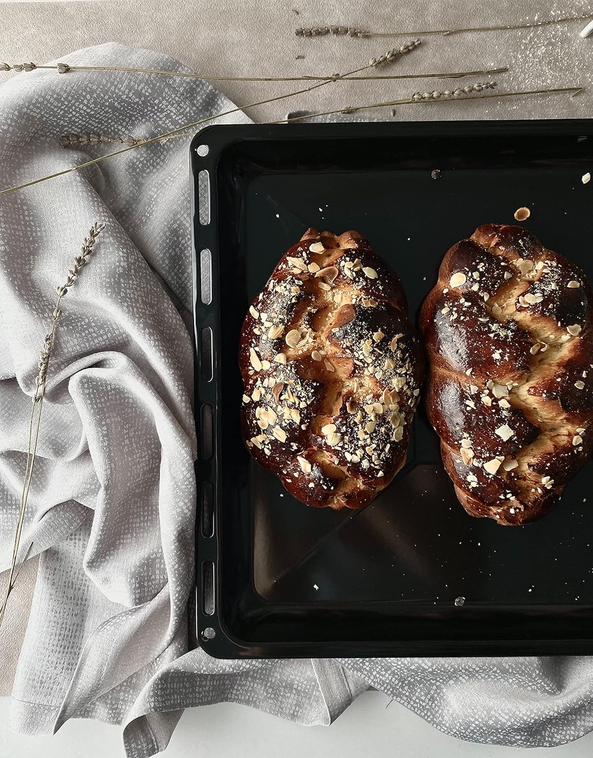 - Blech mit Aussparungen an den Seiten und abgerundeten, weichen Kanten. Es ist dank seiner emaillierten Oberfläche leicht zu reinigen und kann viele Jahre verwendet werden.