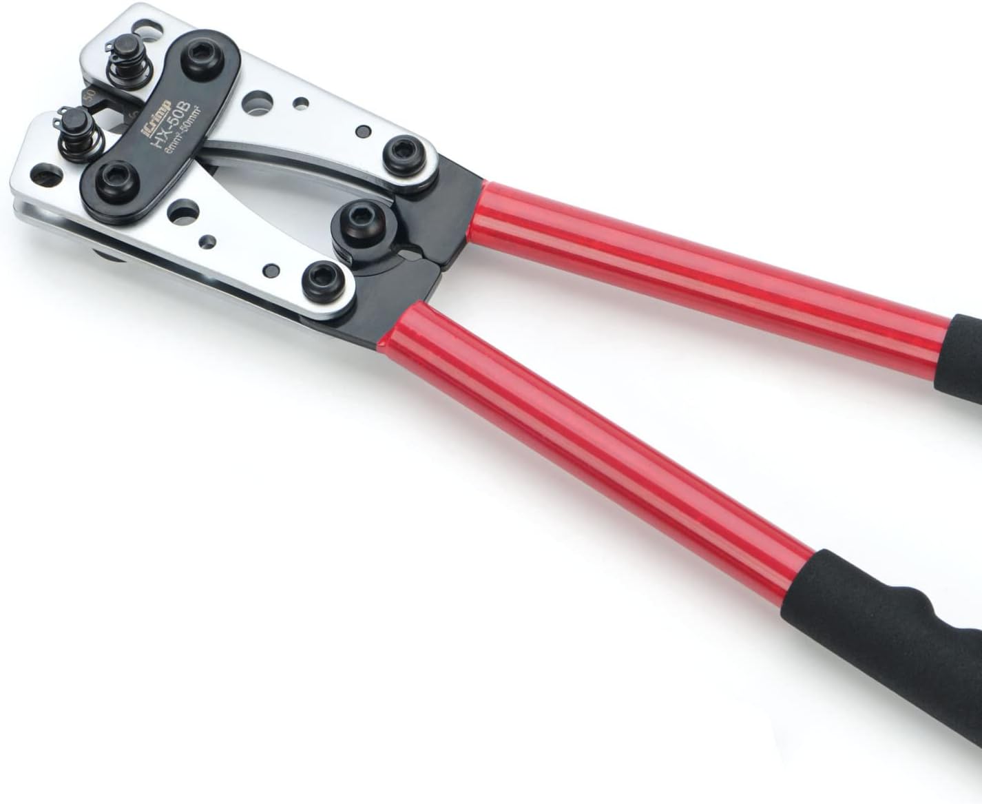 - 【ZWECK】HX-50BI Batteriekabelschuh-Crimper ist zum Crimpen von 6/10/16/25/35/50 mm² Batteriekabelschuhen konzipiert, wodurch eine sichere Verbindung mit Kabeln, elektrischen Geräten und anderen Strommechanismen in rauen Umgebungen besteht.