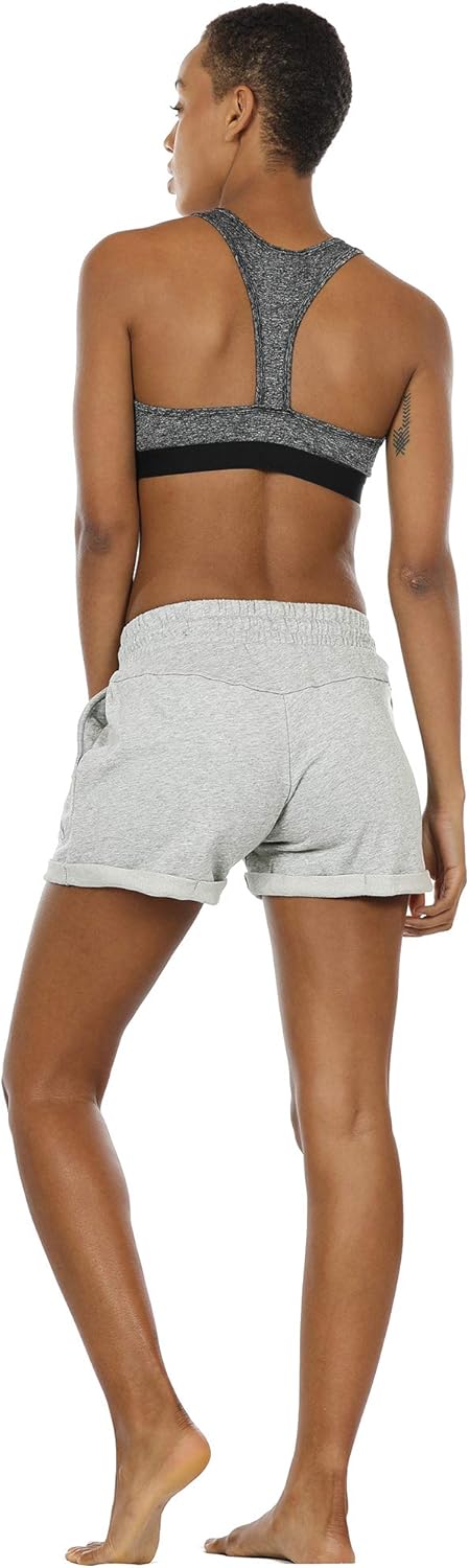 - √ Damen Sweatshorts mit elastischem Gummibund und Tunnelzug, 2 Seitentasche und gekrempelten Saum