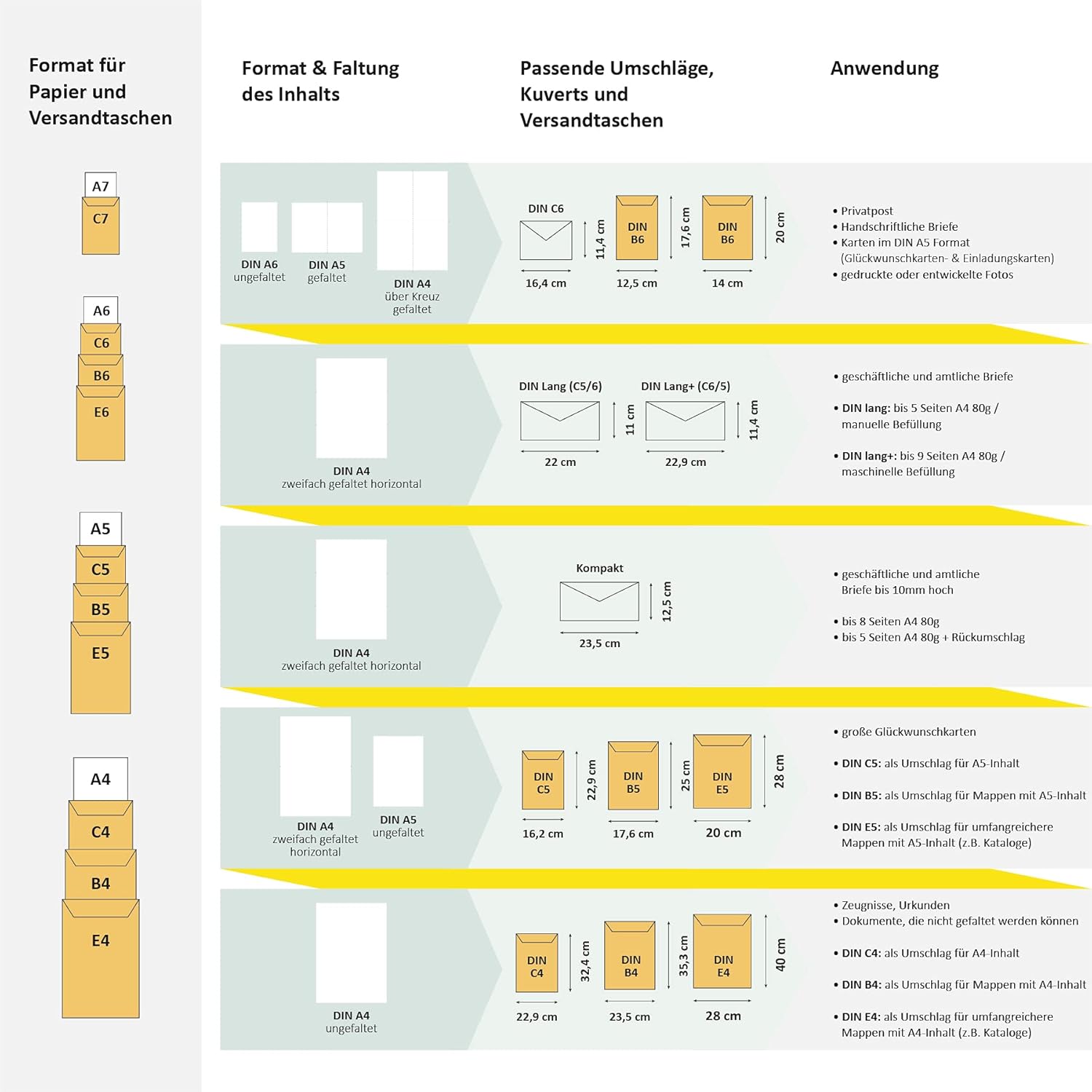 • Format DIN lang (22 x 11 cm), geeignet für Briefe mit bis zu 5 Seiten DIN A4 (80 g/m²) zweifach horizontal gefaltet