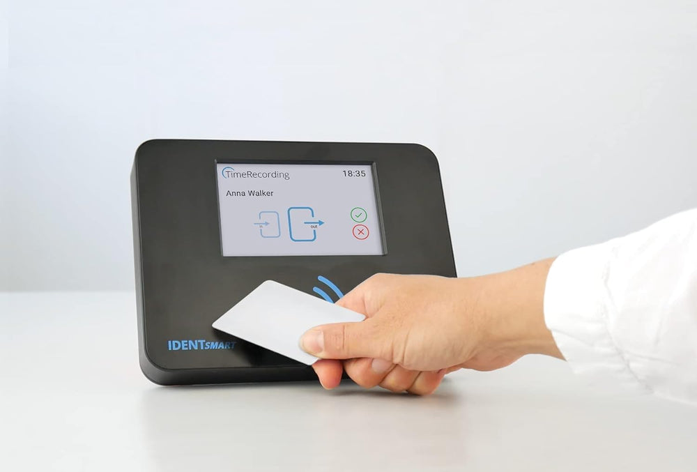 - Inkl. 15 RFID Mitarbeiterkarten (MIFARE, kontaktlos) zum Stempeln am Zeiterfassungsterminal