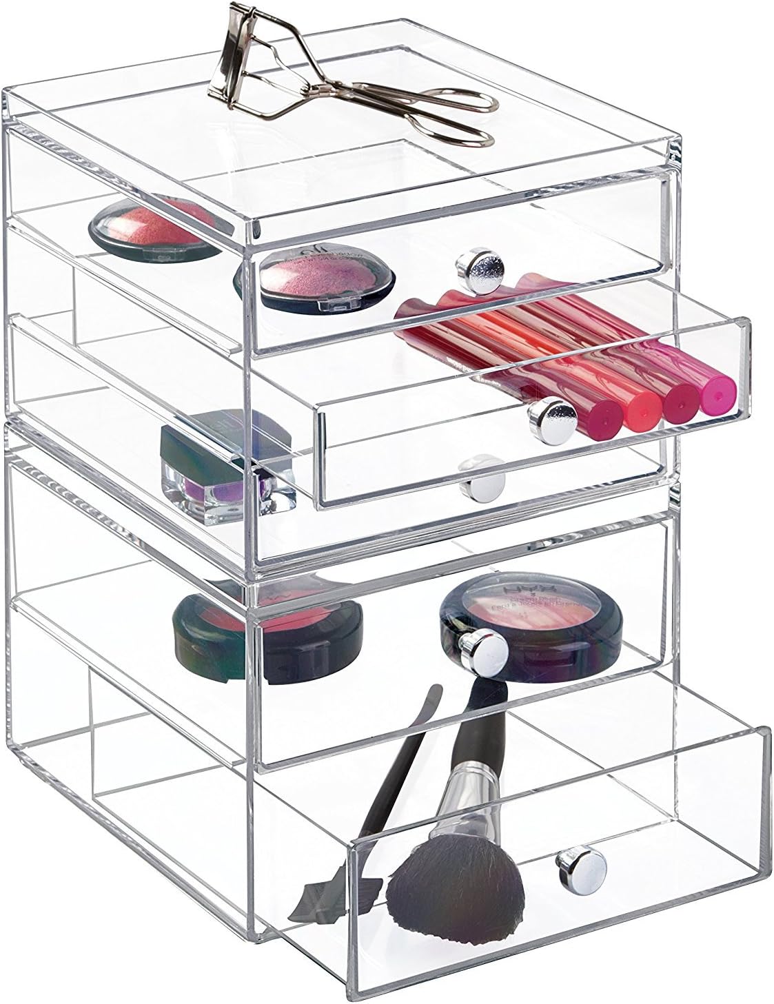 - PRAKTISCHE SCHMINKBOX: Der schmale Organizer mit drei Schubladen passt besonders gut auf den Schminktisch Zusätzlich bietet die obere Ablagefläche Platz für Parfüms und Co