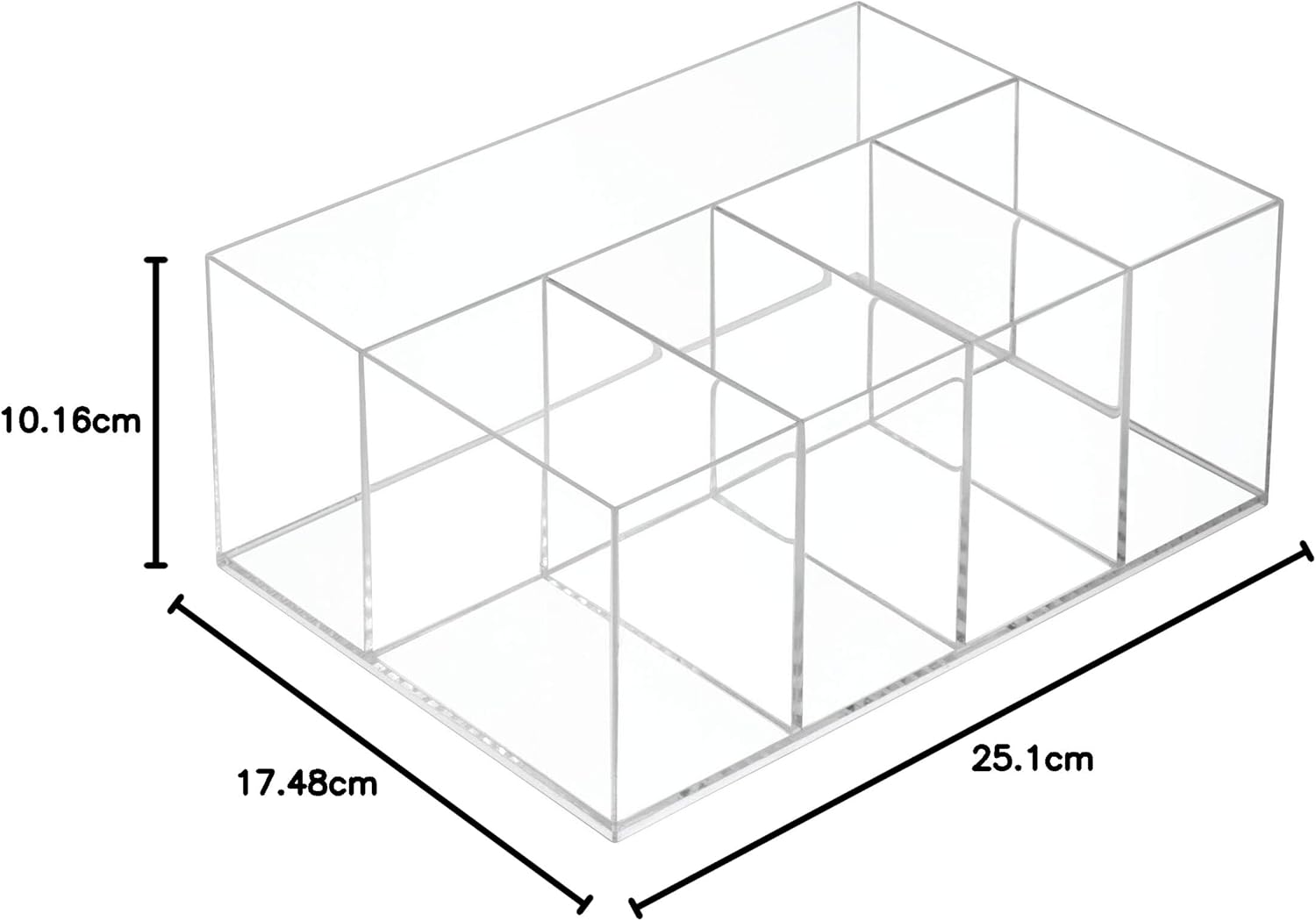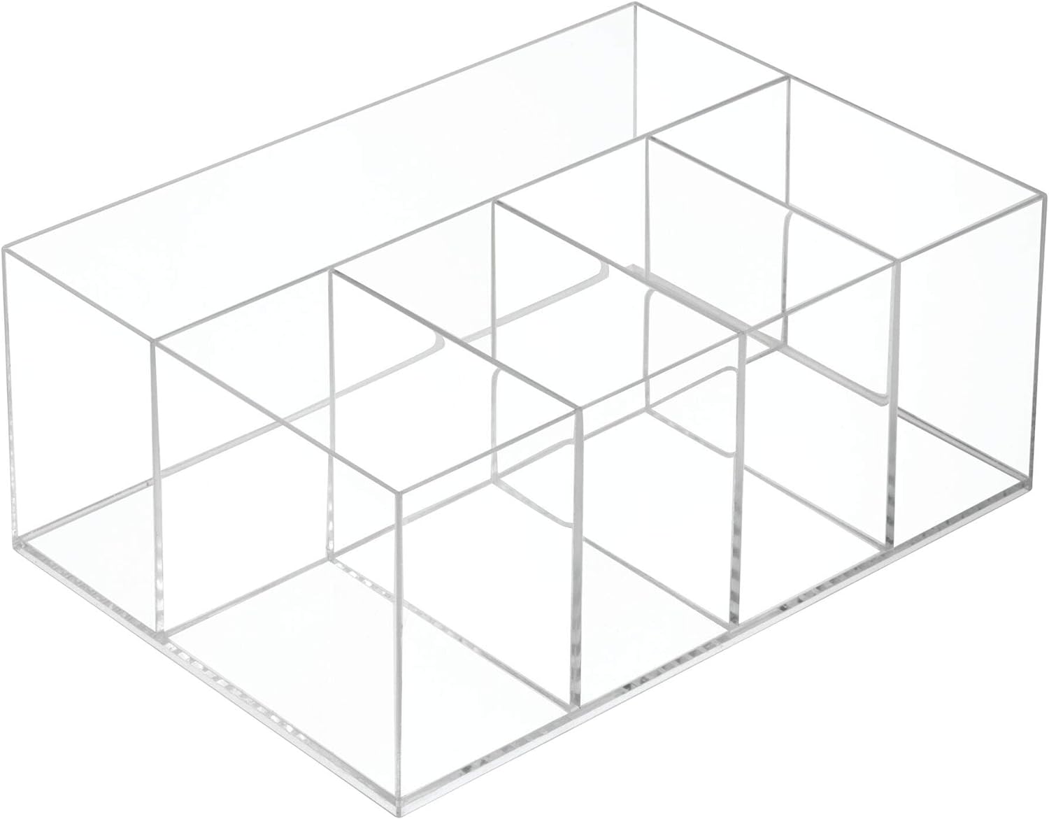 - Unterteilter Aufbewahrungsbehälter: Fünf unterteilte Fächer bieten Stauraum und Organisation für grössere Gegenstände wie Make-up, Kosmetik, Pinsel, Hautpflege, Lotionen, Seifen und mehr auf Badezimmer-Arbeitsplatten