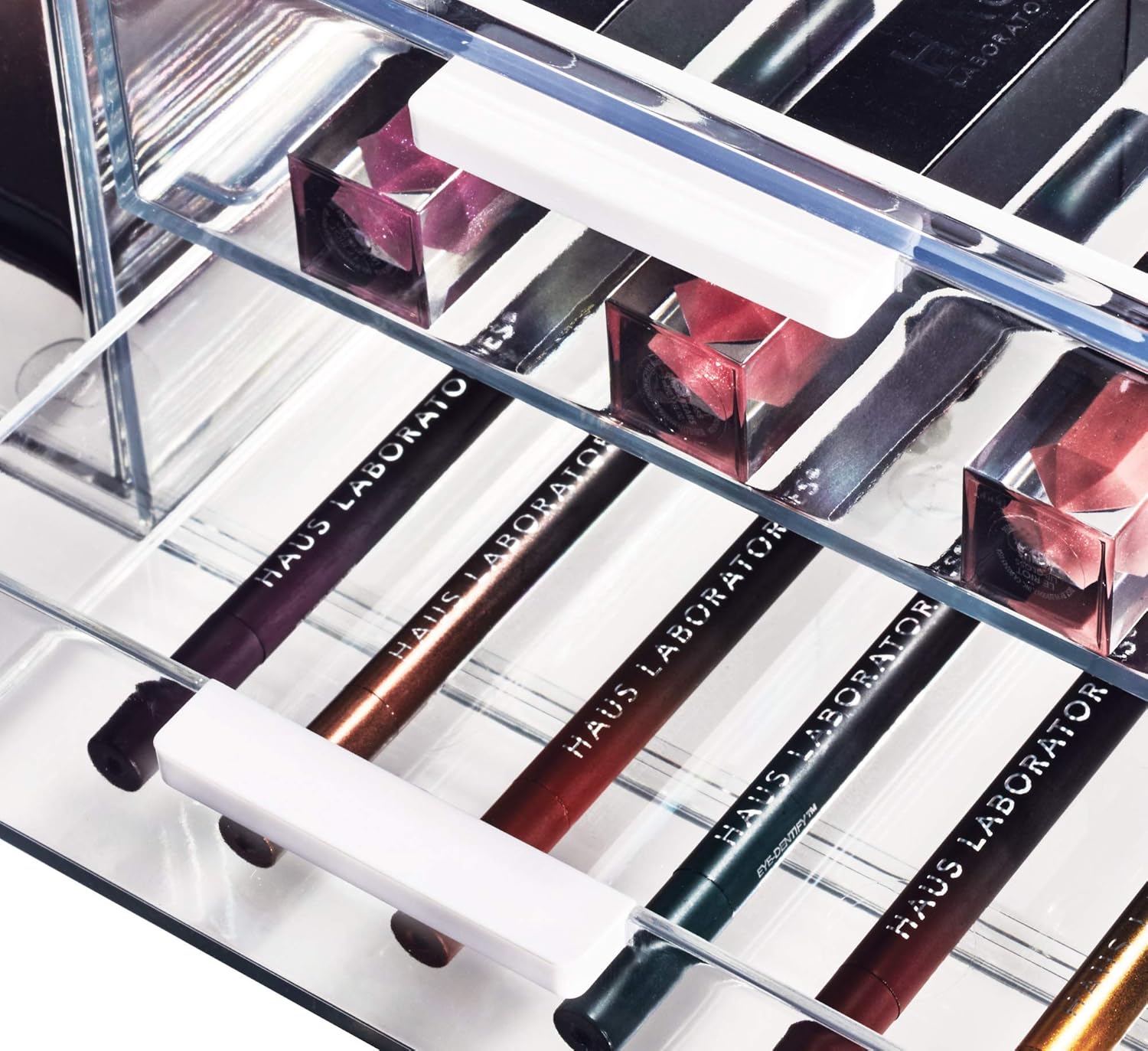 • PRAKTISCHES DESIGN: In den 3 unterschiedlich grossen Schubladen der Kosmetik Aufbewahrung sind alle wichtigen Make-up und Beauty Utensilien übersichtlich aufbewahrt.