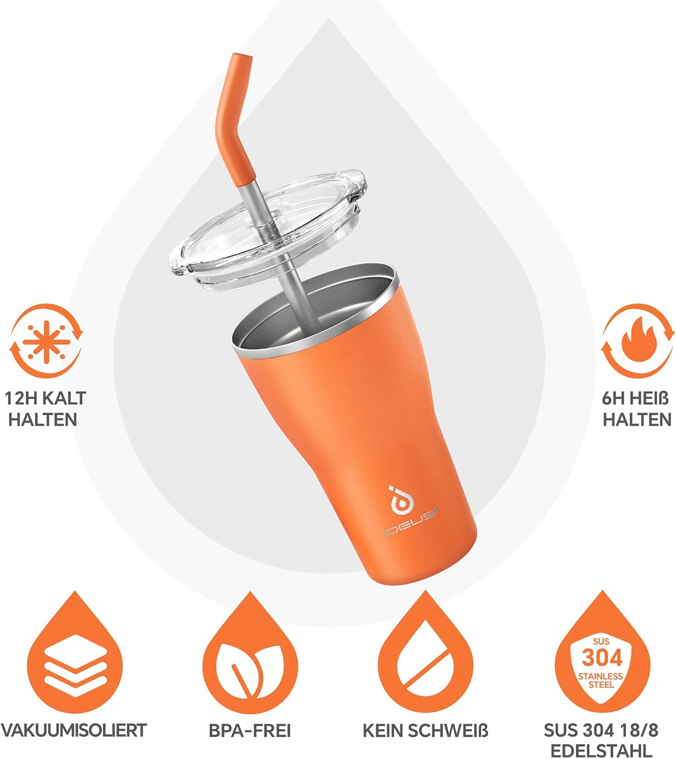 - 100% Lecksicher.Dieser isolierte Becher wird mit 2-Deckeln geliefert. ① 100% auslaufsicherer Schraubklappendeckel mit Trinkauslass Loch für Stroh ② Ein spritzwassergeschützter transparenter Schraubstrohdeckel. Zusätzlich wird ein zusätzlicher
