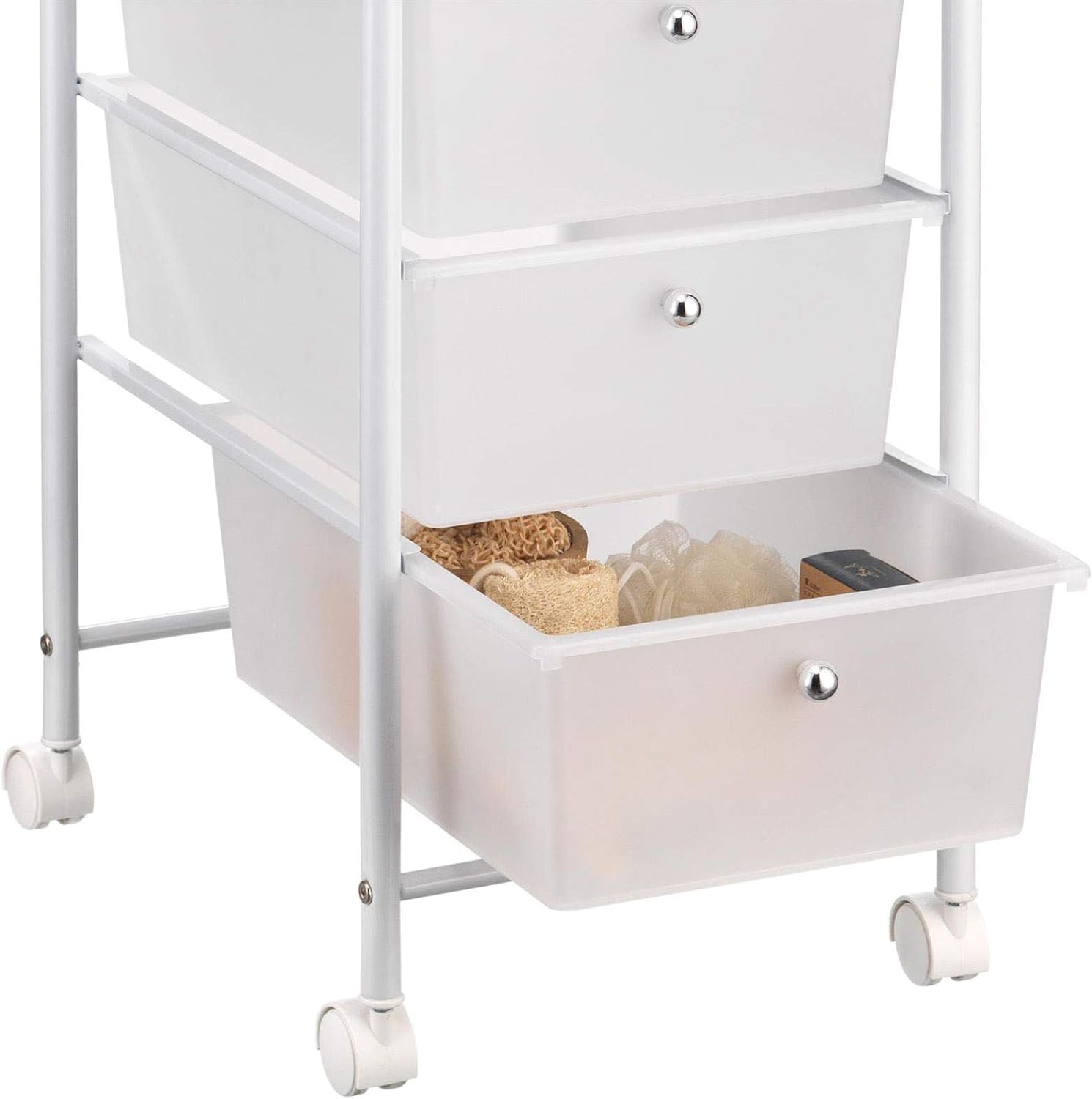 - Der Rollcontainer verfügt über 3 transparente Schubladen aus Kunststoff, einer Ablage aus Lochblech und ist vielseitig im Arbeitszimmer, Büro, Bad oder Kinderzimmer einsetzbar