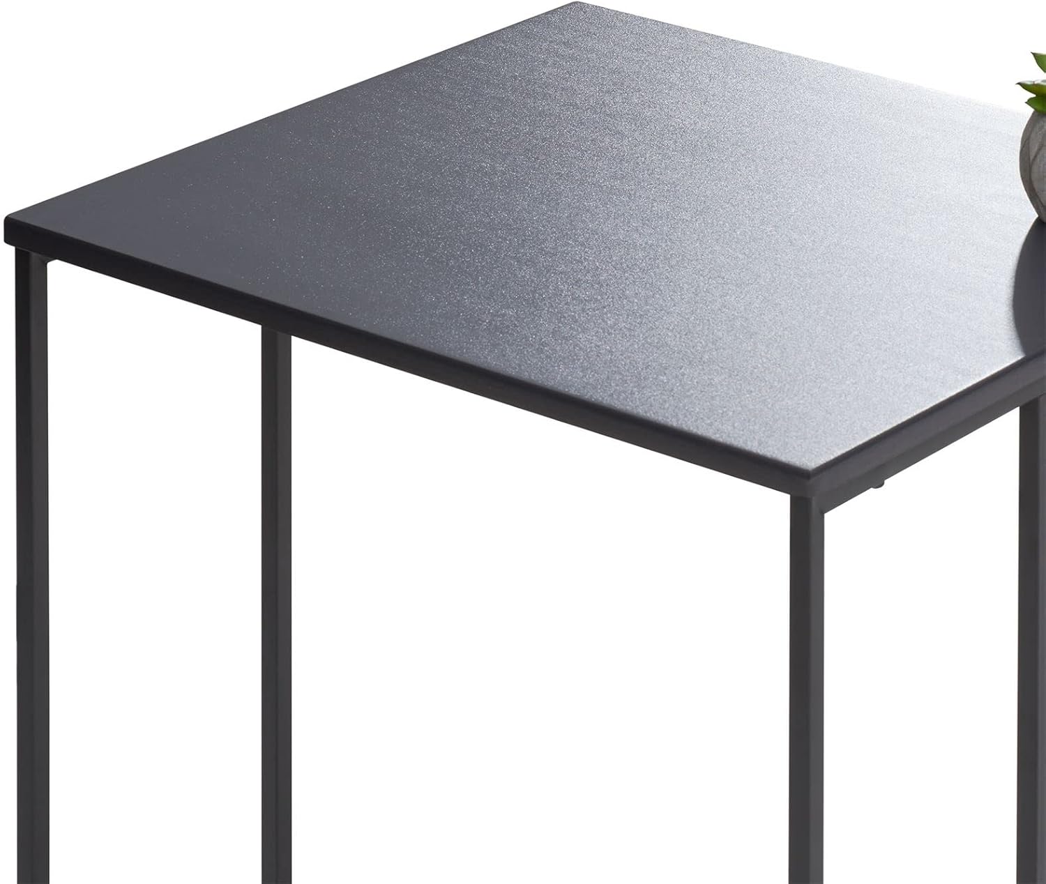 - MATERIAL: robustes und standfestes Metallgestell, schwarz lackiert, Stärke 13 mm, Tischplatte aus MDF, schwarz foliert, Stärke 15 mm,