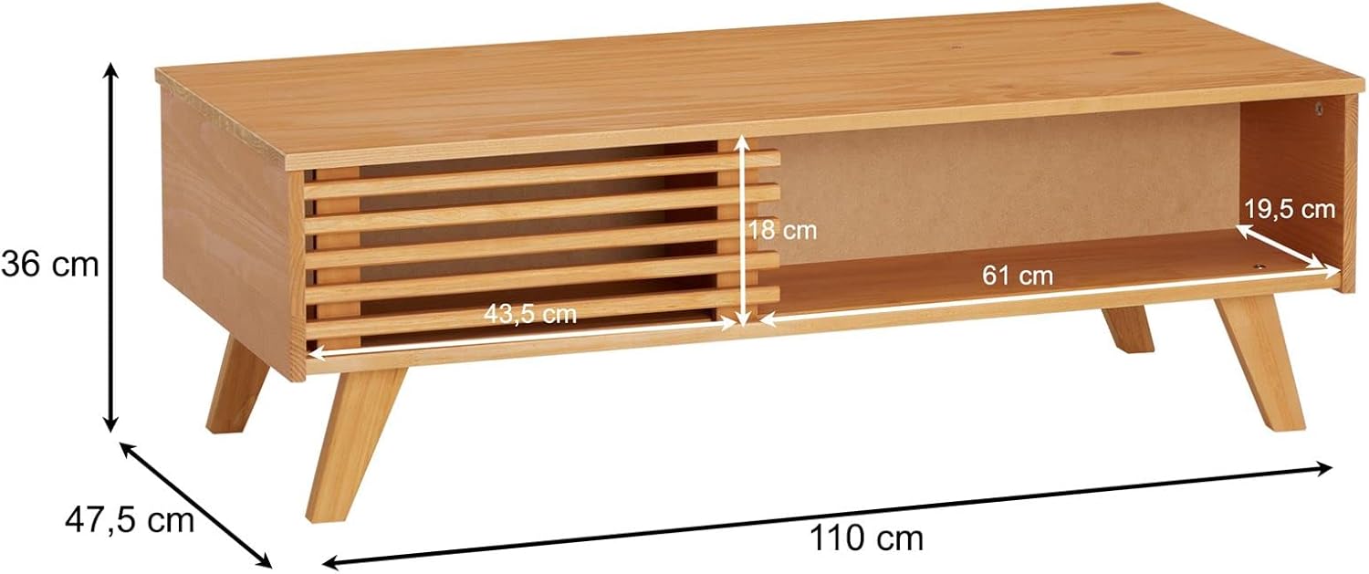 - Material: Der Couchtisch ist aus massivem Kiefernholz gefertigt und hat dadurch einen stabilen Halt.