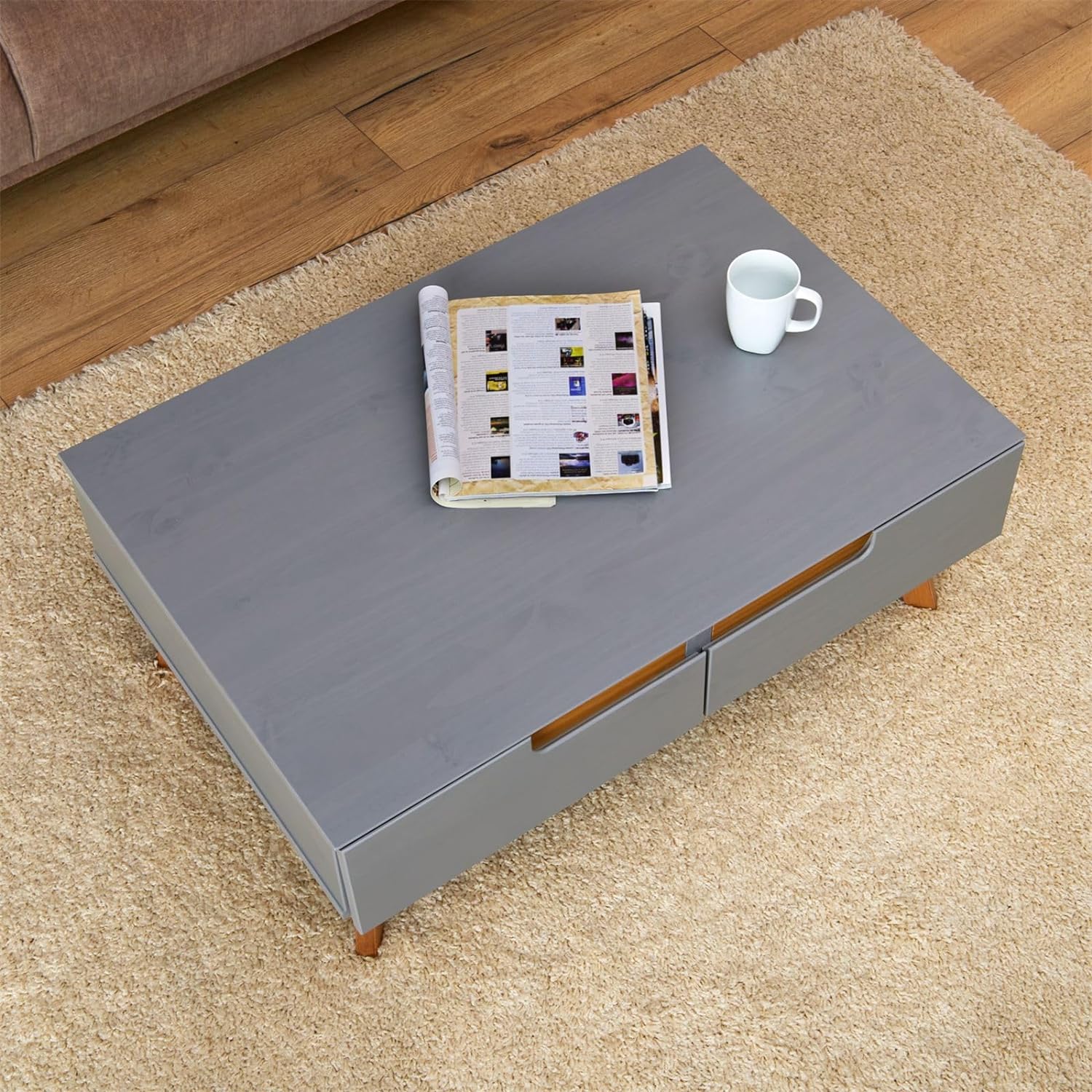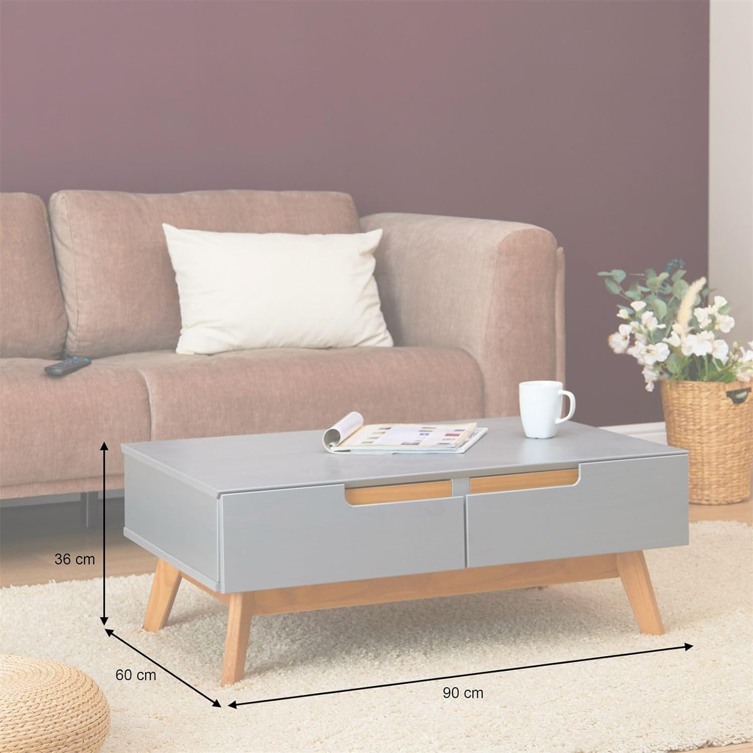 - Der rechteckige Wohnzimmertisch im skandinavischen Design ist aus massiver Kiefer gefertigt und die Oberfläche ist lackiert oder gebeizt