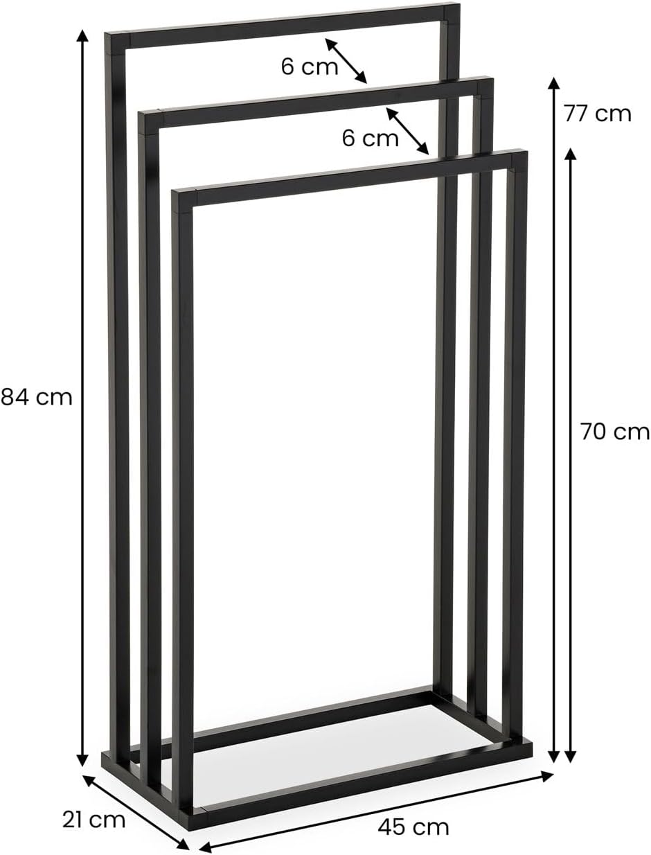 - Versetzte Handtuchstangen: Der freistehende Badetuchhalter mit 3 stufenförmigen Handtuchstangen ist aus Metall gefertigt und hochwertig schwarz lackiert