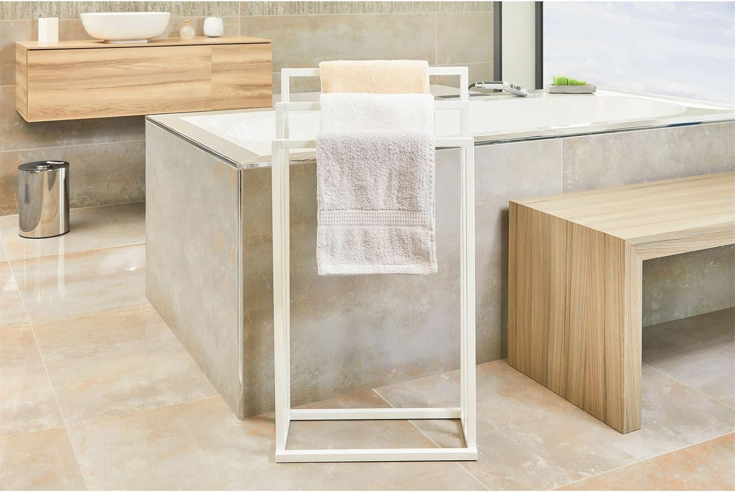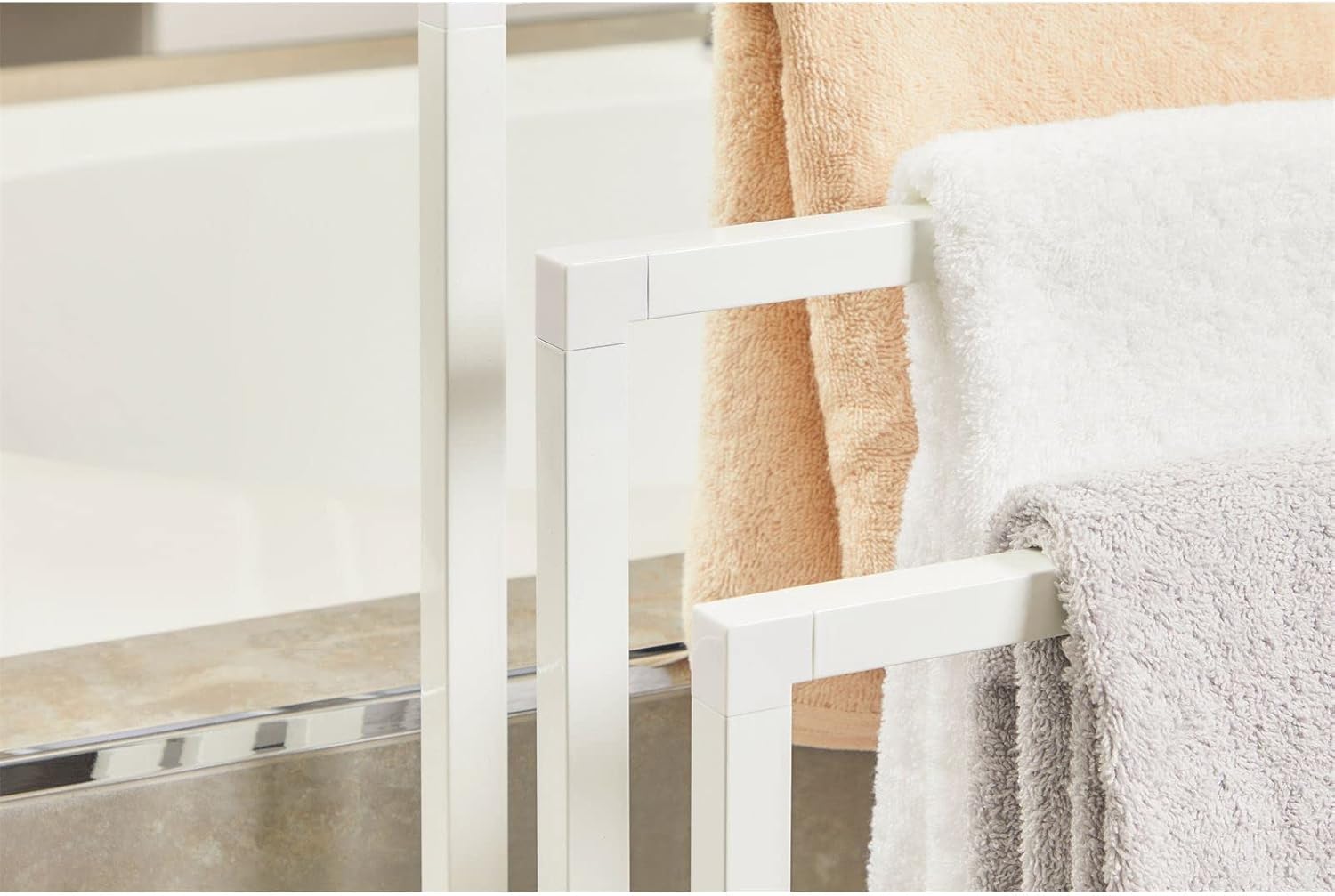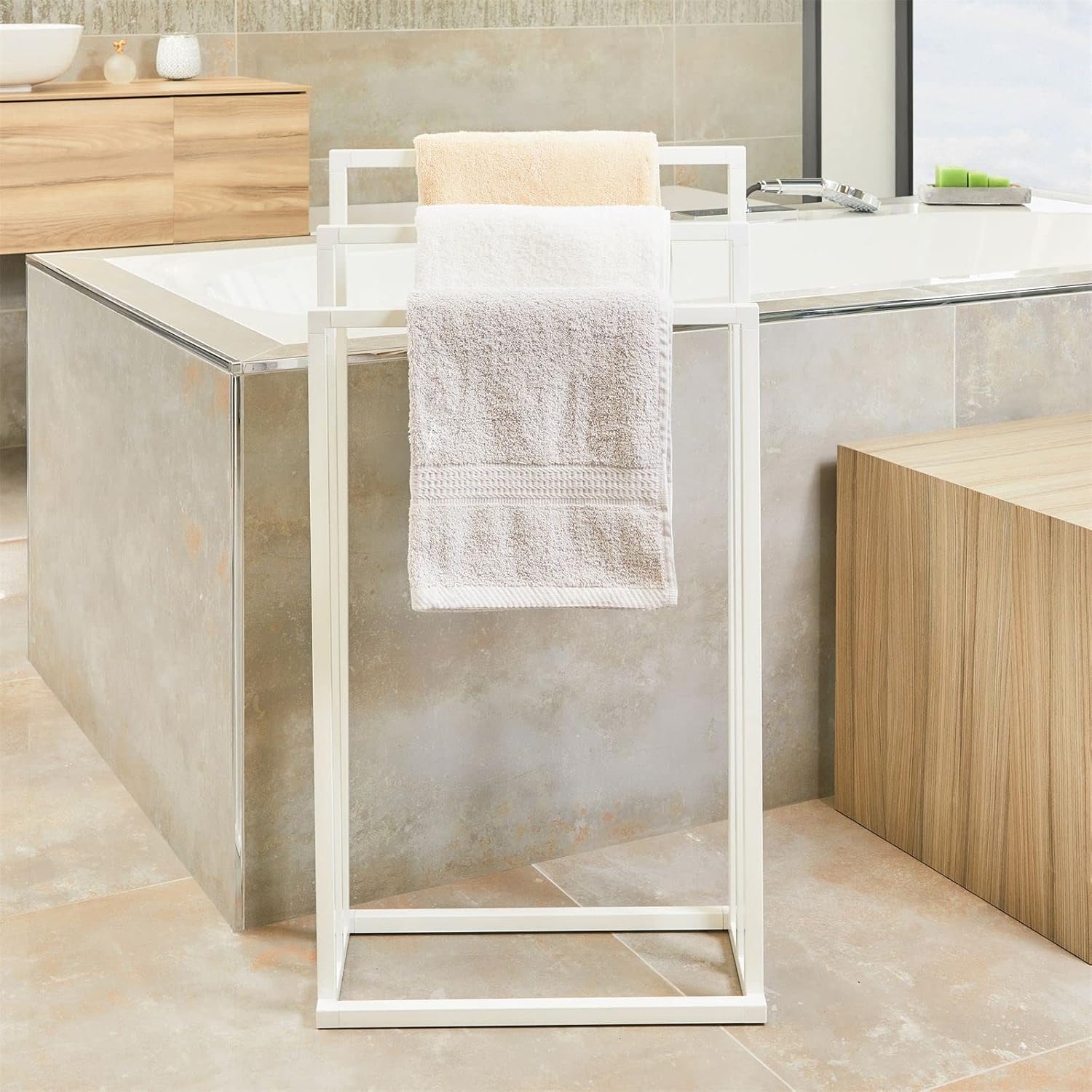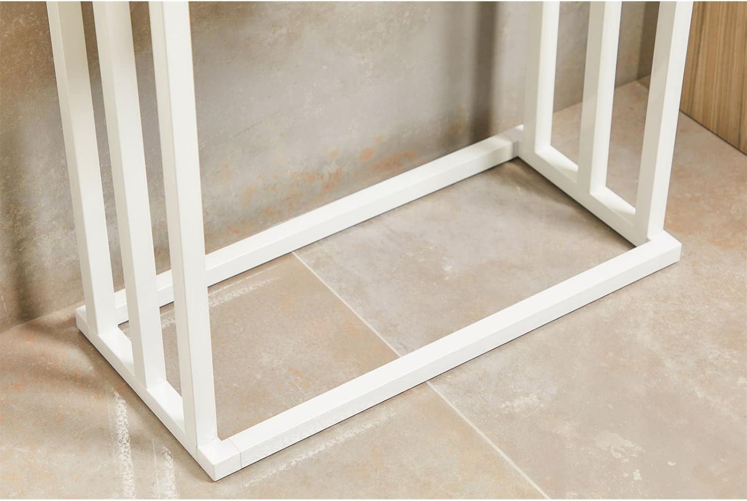 - Versetzte Handtuchstangen: Der freistehende Badetuchhalter mit 3 stufenförmigen Handtuchstangen ist aus Metall gefertigt und hochwertig weiss lackiert