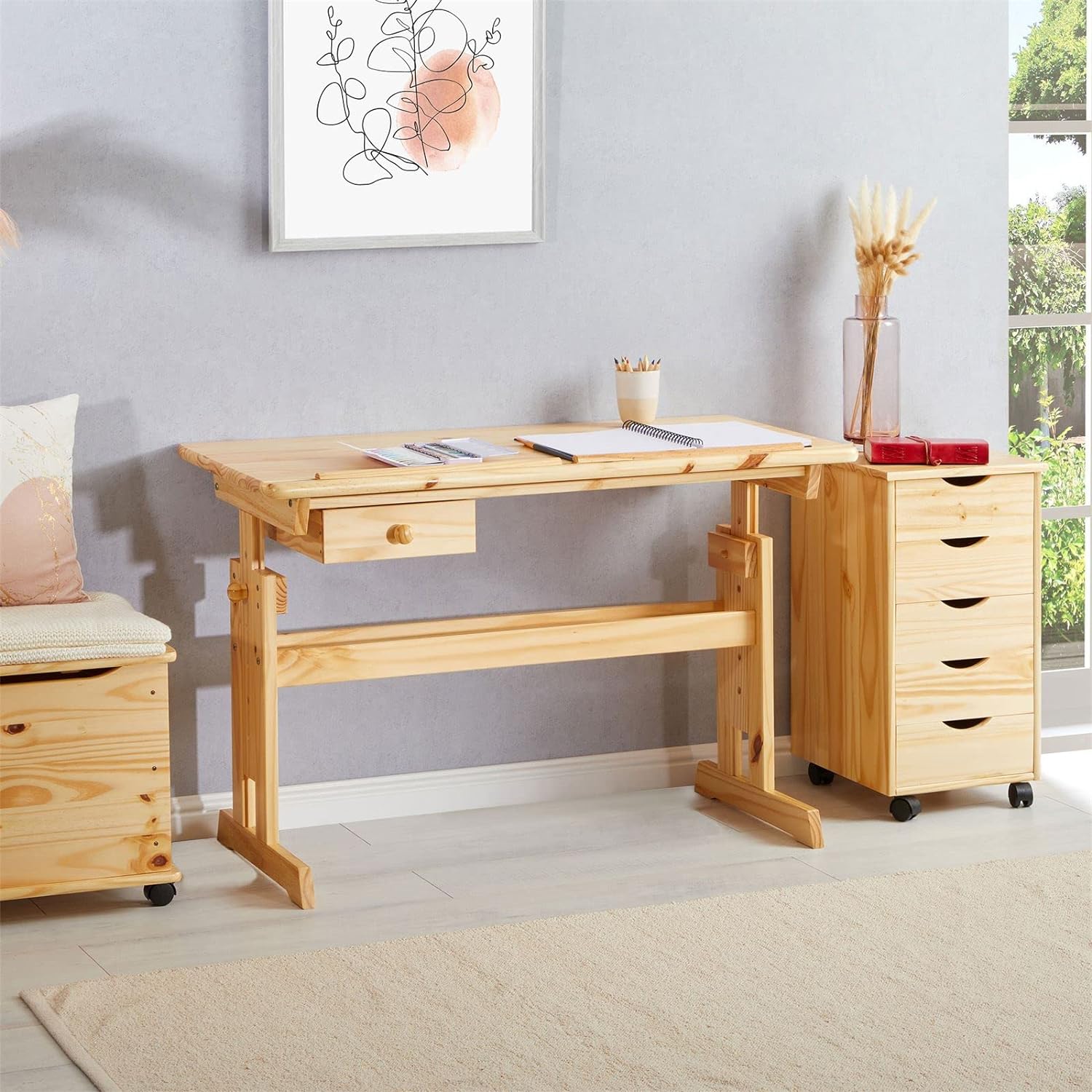 - höhenverstellbarer Kinderschreibtisch aus Kiefermassivholz