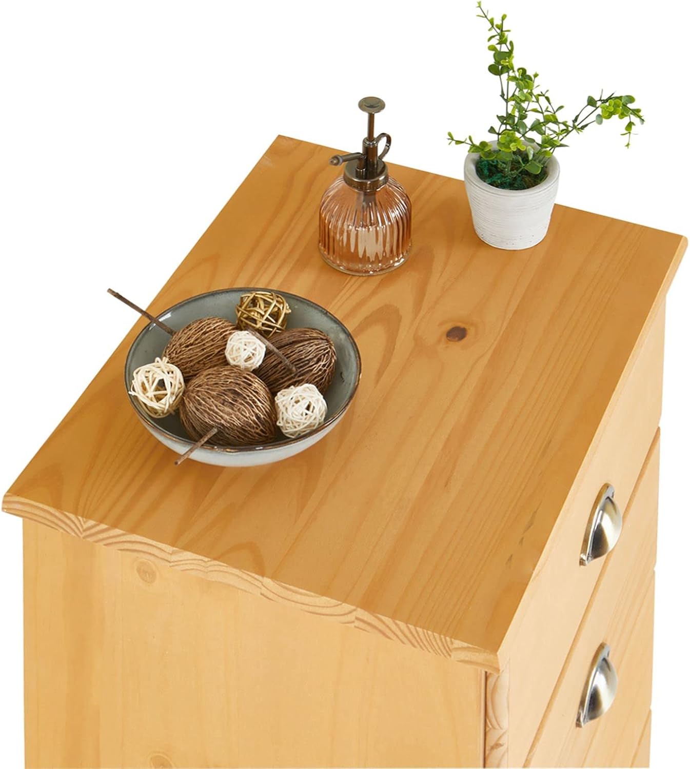 • Schubladenkommode aus massiver Kiefer mit lackierter Oberfläche, die Holzmaserung ist sichtbar