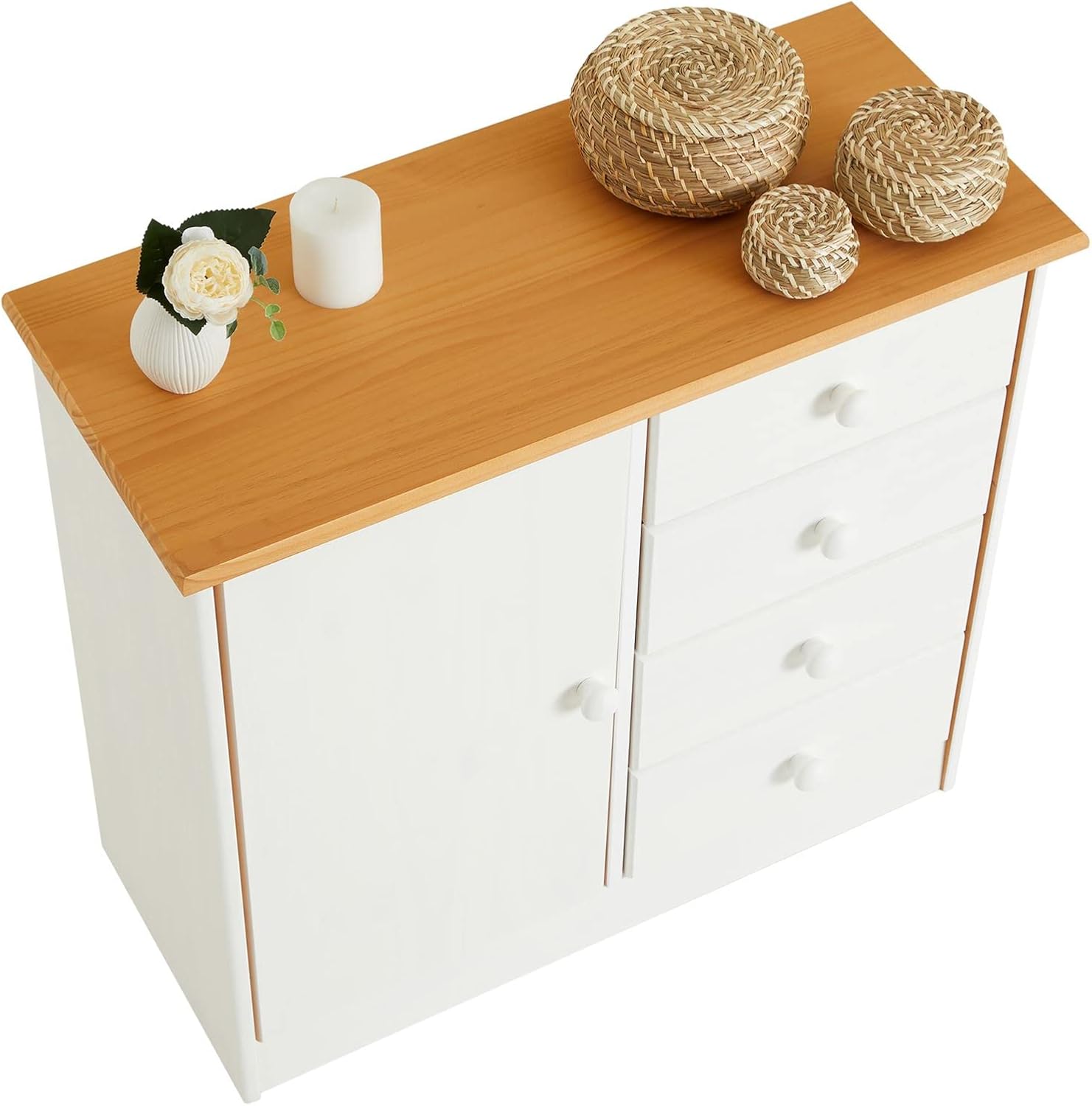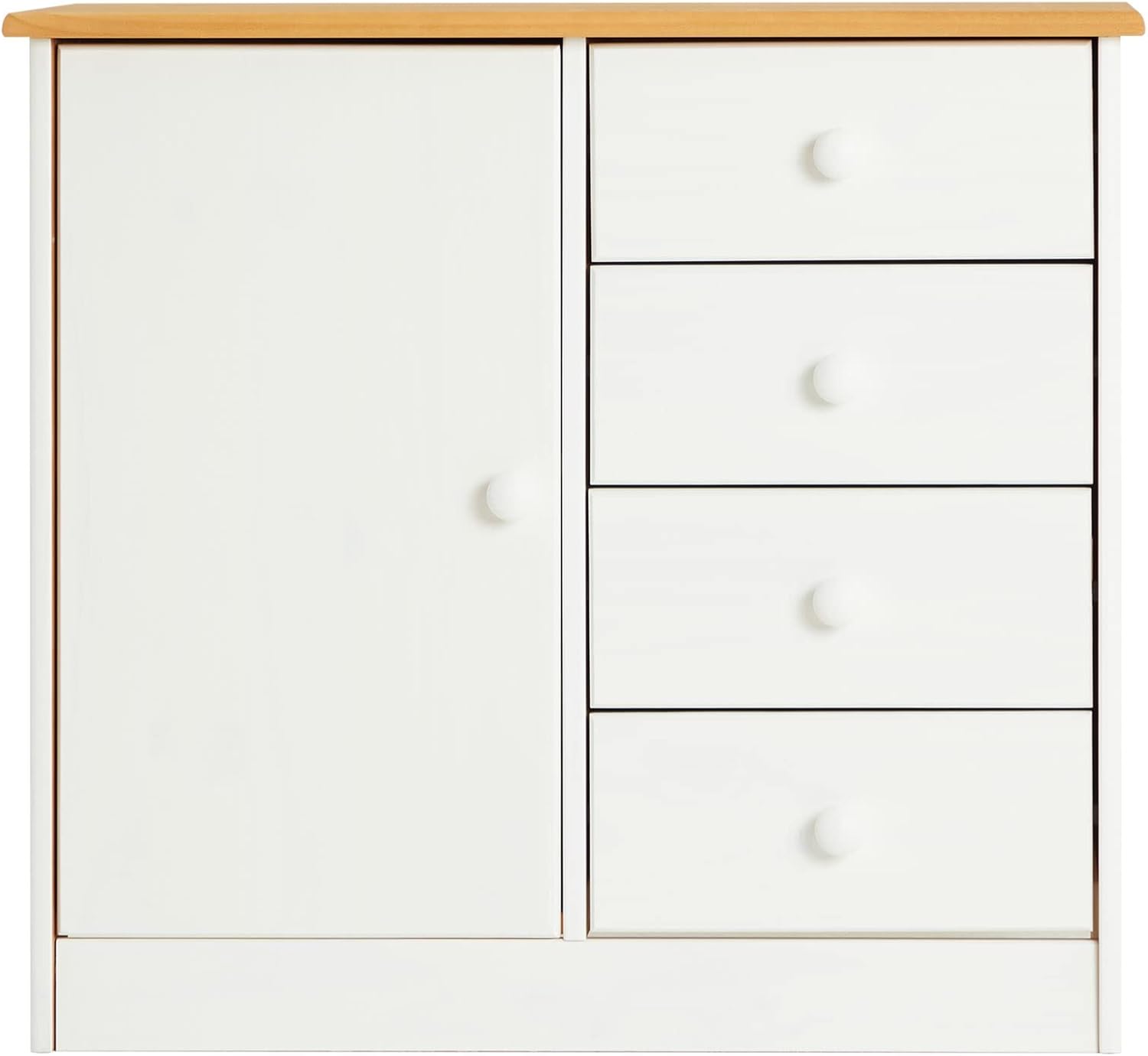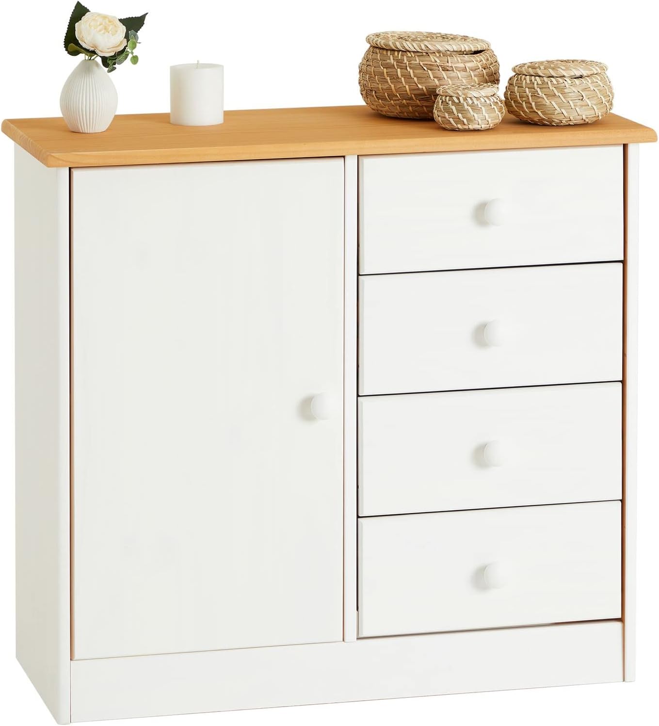 IDIMEX Kommode Rondo in weiss/braun mit 4 Schubladen und 1 Tür, Schubladenschrank aus Kiefer im Land