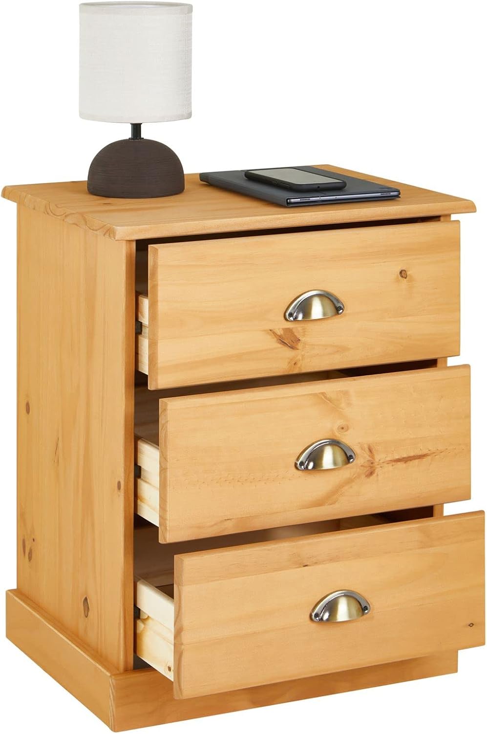 IDIMEX Nachtkommode Paris aus massiver Kiefer gebeizt, schöner Nachttisch mit 3 Schubladen, praktisc