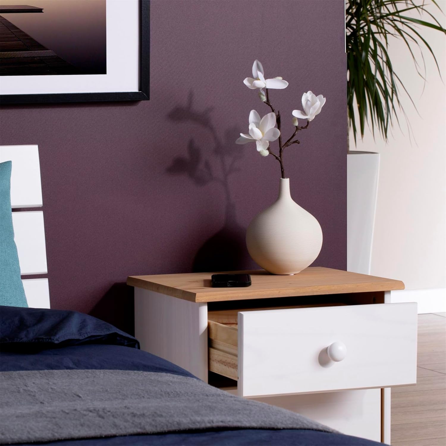 IDIMEX Nachttisch Rondo,Kommode aus Kiefer massiv, weiss/braun lackiert, 2 Schubladen, Landhausstil,