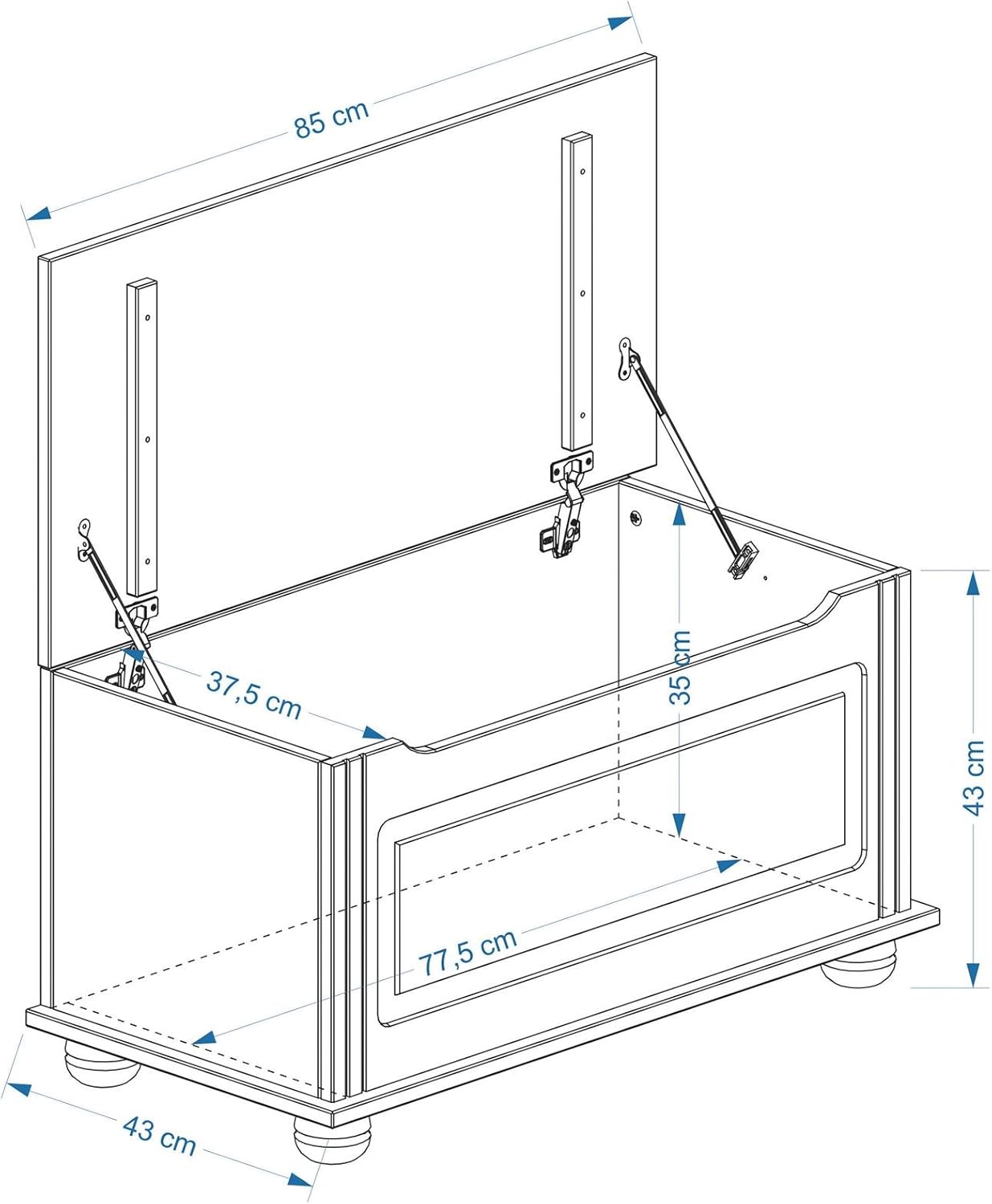 - Aufbaumass Truhenbank: 85 x 45 x 43 cm (Breite x Höhe x Tiefe)