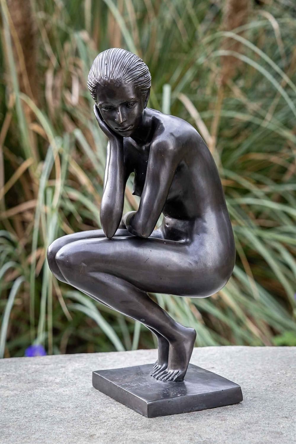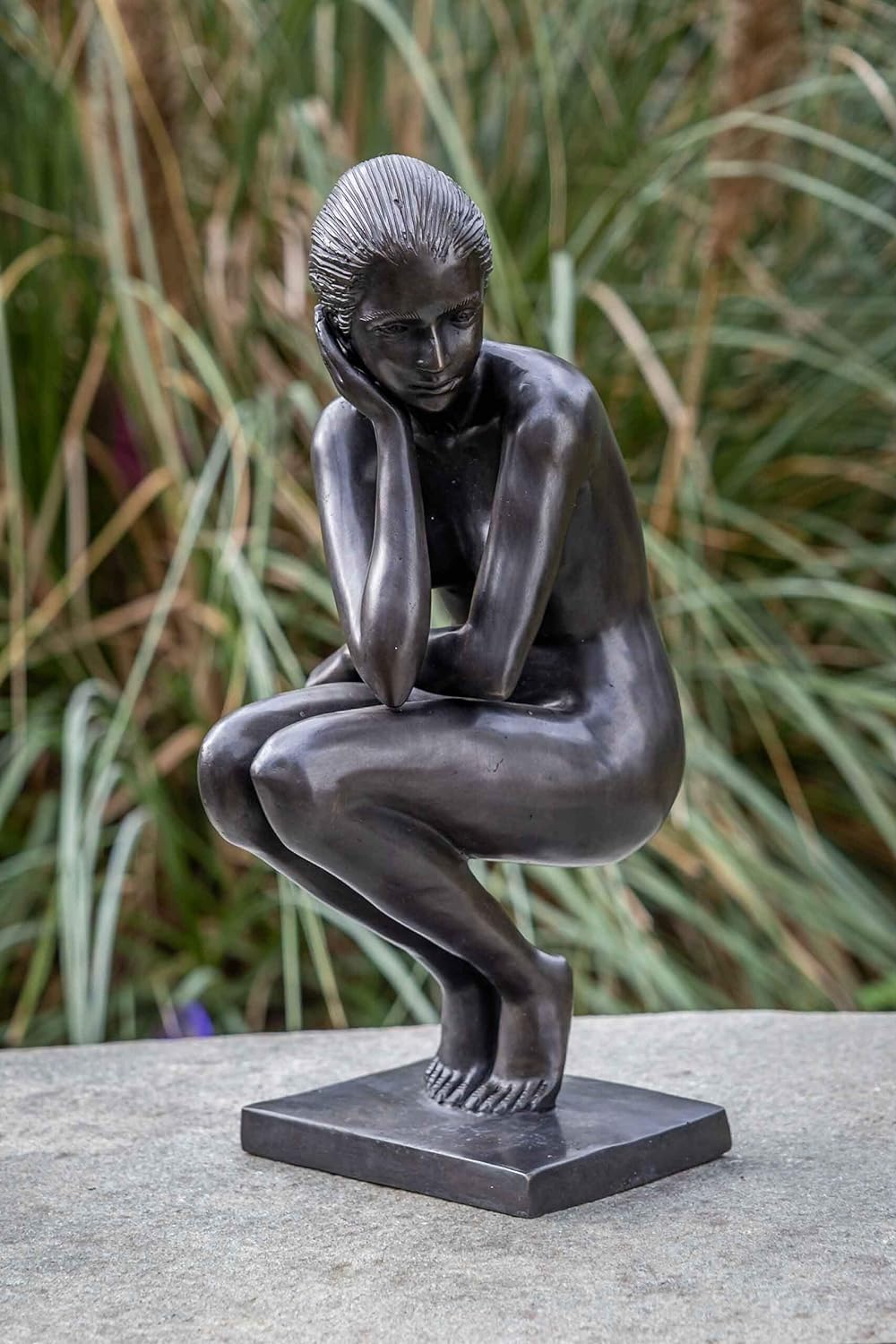 IDYL Bronze-Skulptur Eine hockende Frau | 37x15x19 cm | Klassische Bronze-Figur handgefertigt | Gart