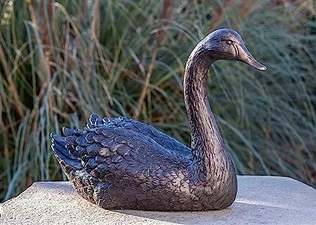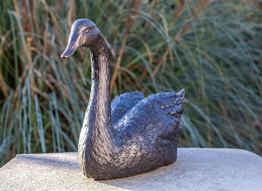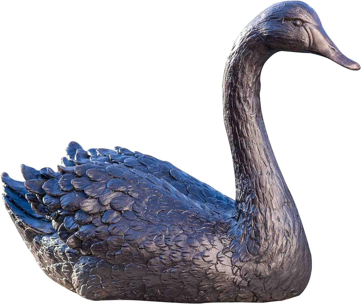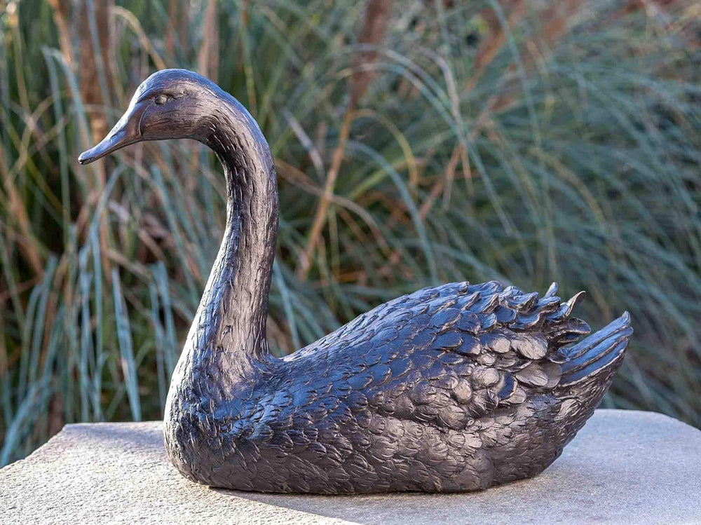 IDYL Bronze-Skulptur grosser Schwan | 34x20x47 cm | Tierfigur aus Bronze handgefertigt | Gartenskulp