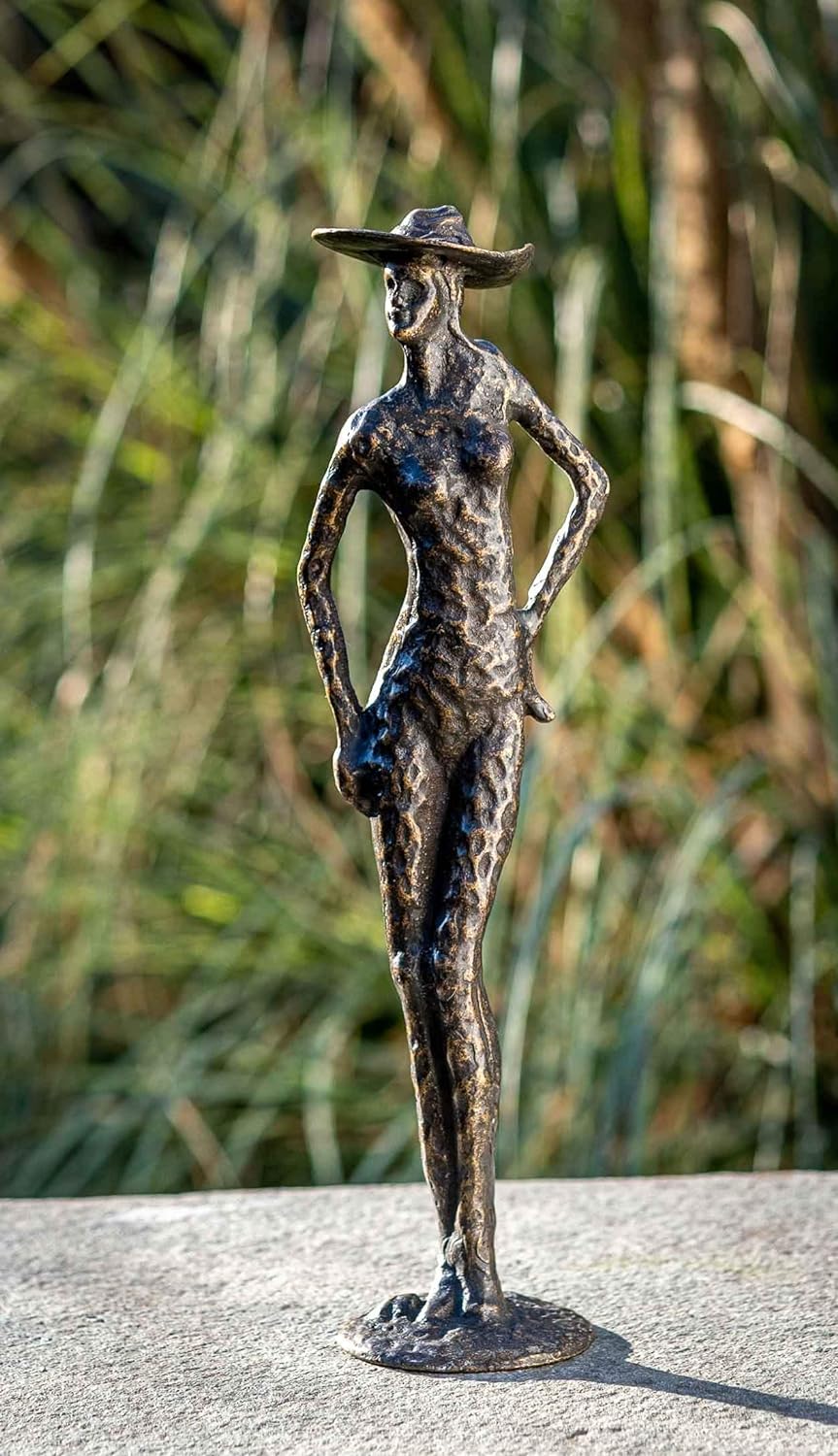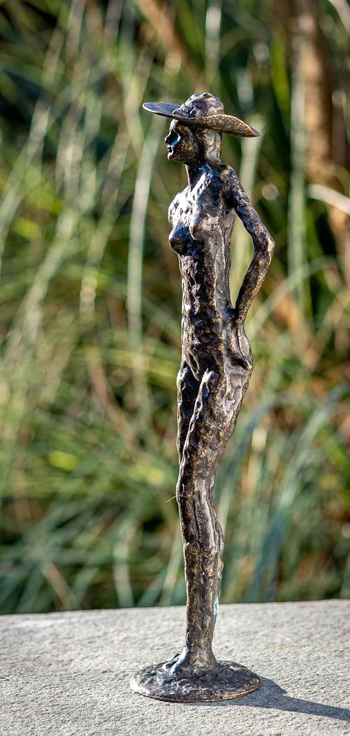 IDYL Bronze-Skulptur Moderne Frau mit Hut | 40x9x11 cm |Bronze-Figur handgefertigt | Gartenskulptur