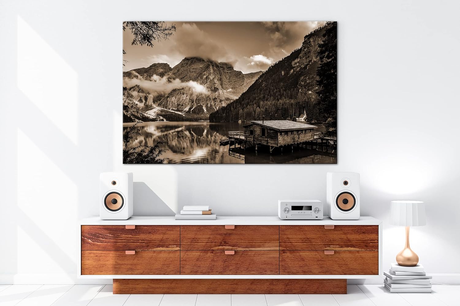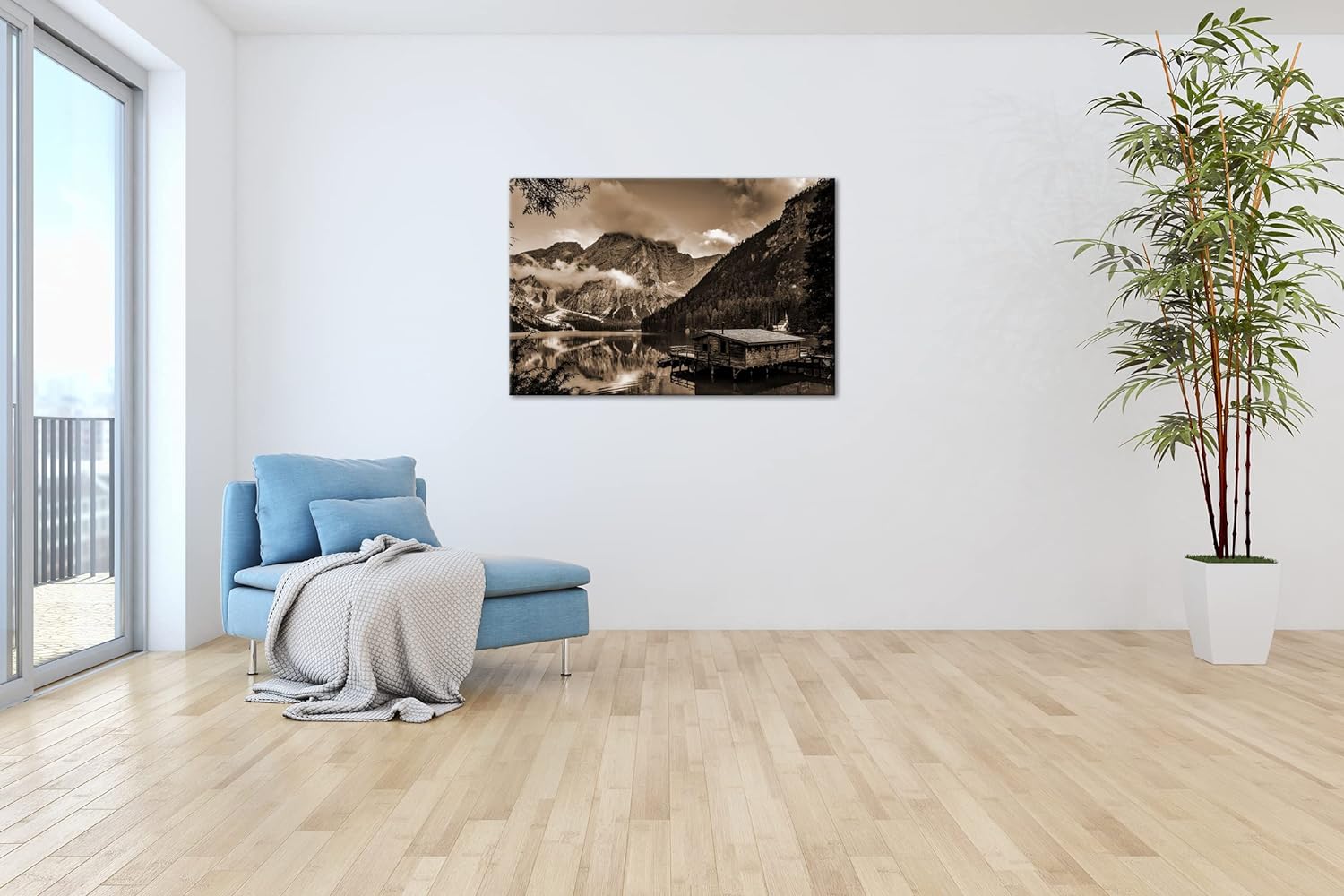 deyoli idyllischer Ort am Pragser Wildsee Effekt: Sepia, Format: 80x60 als Leinwandbild, Motiv ferti