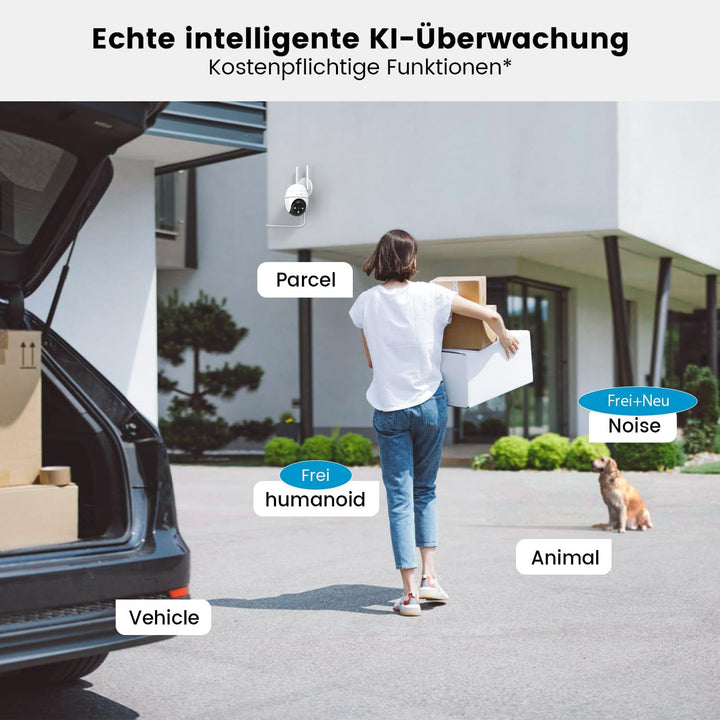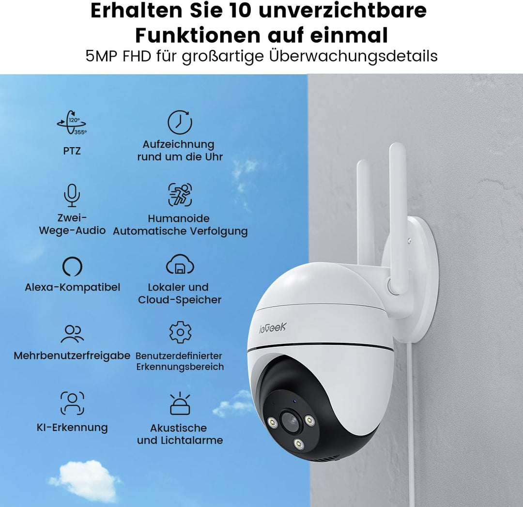 - 【Personenerkennung & 355° Schwenken/120° Neigen】ieGeek wlan cam outdoor für den Aussenbereich, die mit einer der Menschenerkennungsfunktion ausgestattet ist, kann 95% Fehlalarme durch Insekten und Regen reduzieren. Mit der wunderbaren Schwenk- /