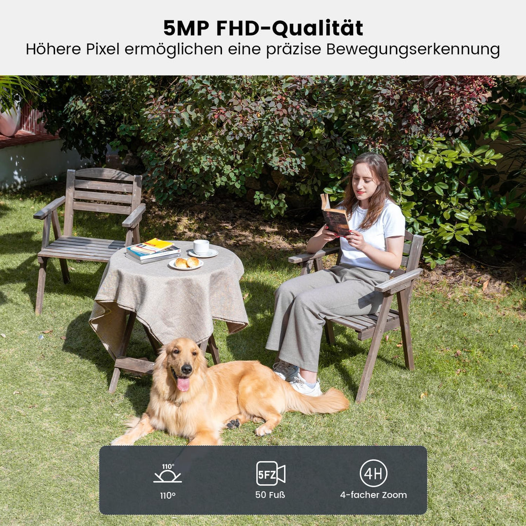 - 【5MP FHD-Pixel & Farbnachtsicht】Diese überwachungskamera aussen wlan ist mit einer HD-Videoauflösung ausgestattet ,um Ihnen Tag und Nacht klarer Bilder und Vidoes als 1080P zu liefern. Und dank der eingebauten weissen Leuchten und Infrarot-Leuchten