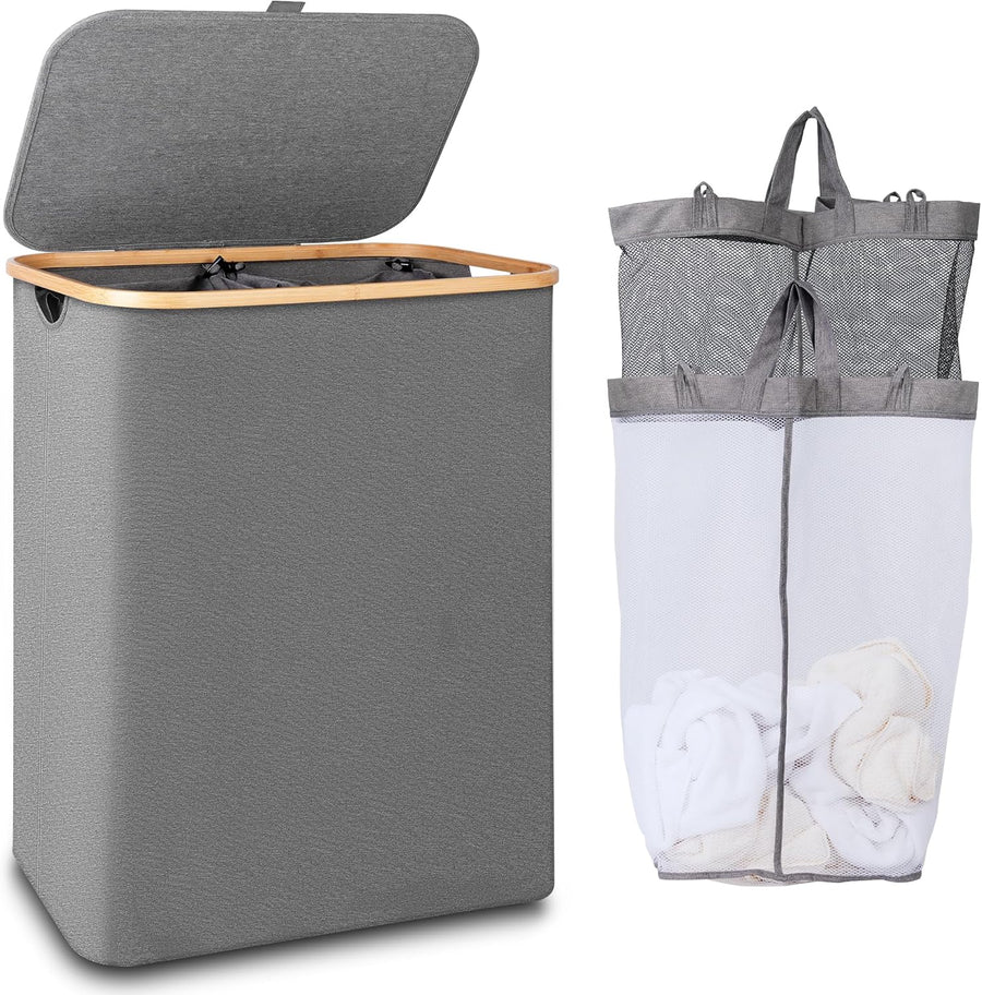 - 【Abnehmbarer Innenbeutel】 Dieser doppelte Wäschesammler hat 2 herausnehmbare und waschbare Innenbeutel, was es praktisch macht, zwischen dunkler und heller Kleidung oder Kleidung und Hosen usw. zu unterscheiden. Der Innenbeutel mit Netzdesign ist