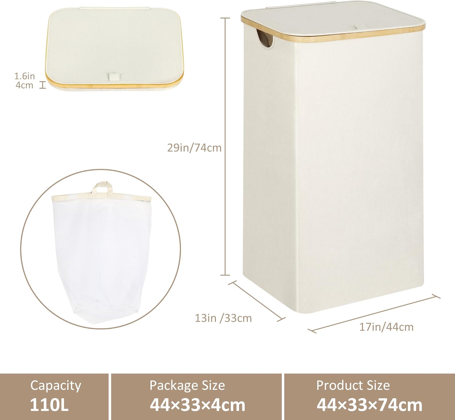 - 【Wasserdicht und langlebig】 Der Wäschekorb besteht aus dickem Stoff und Bambusgriff. Der Wäschekorb fasst 110 Liter. Der Griff aus dickem Leinen und Bambus kann lange haltbar sein. Es ist nicht leicht zu beschädigen. Der Bambusgriff rostet nicht,