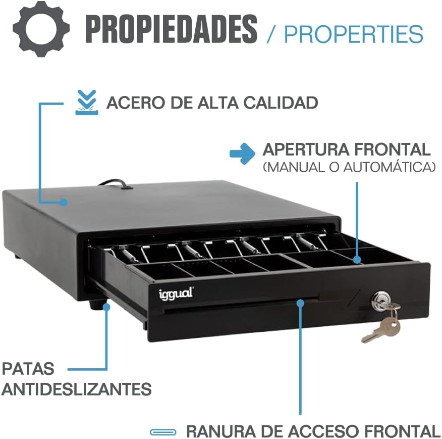 iggual - Geldkassette Abschliessbar IRON - 10 | Kassenschublade mit automatischer oder manueller Öff