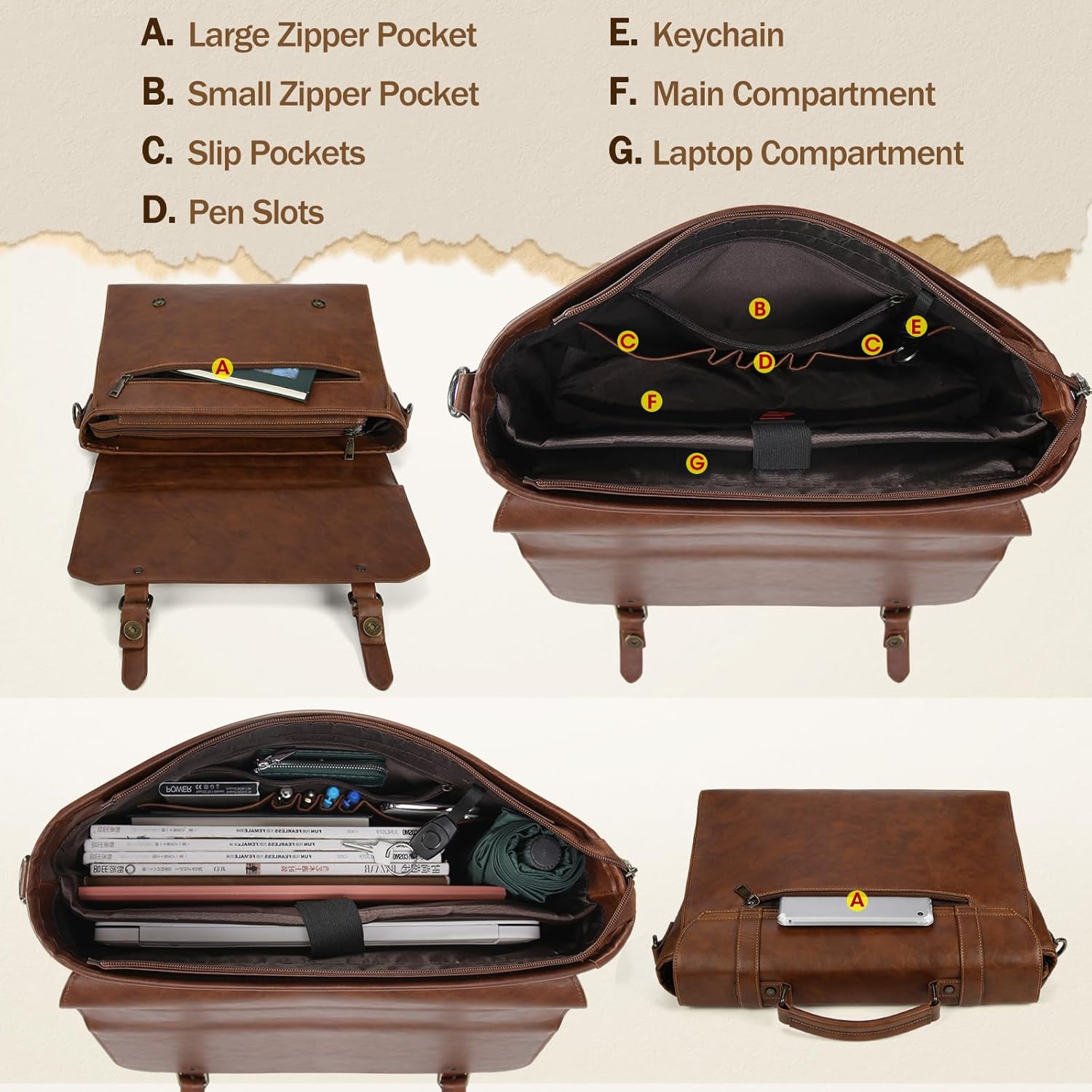 - 【ANWENDBARER ANLASS】Diese messenger bag ist nicht nur eine Aktentasche, sondern auch eine Kuriertasche und Umhängetasche. Die stilvolle Retro-Farbe und Design ist perfekt für die meisten Gelegenheiten wie täglich, Arbeit, Geschäftsreisen, Schule