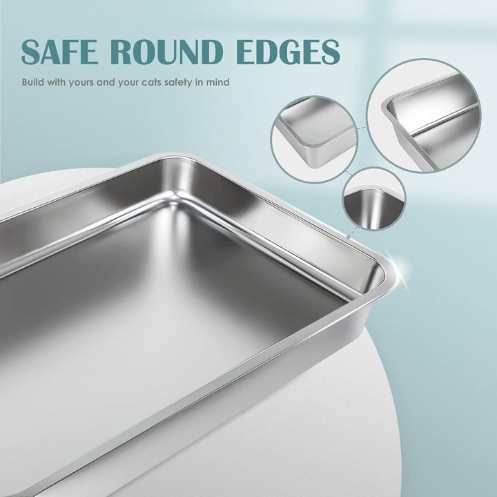 - 🐱【Sicherheitsdesign】Abgerundete Ecken, keine scharfen Kanten Design machen das Edelstahl-Klo für Katzen sicher und bequem zu halten, kann leicht aufgenommen werden und machen Sie sich keine Sorgen über Ihre Hände zu verletzen, sicher für Sie