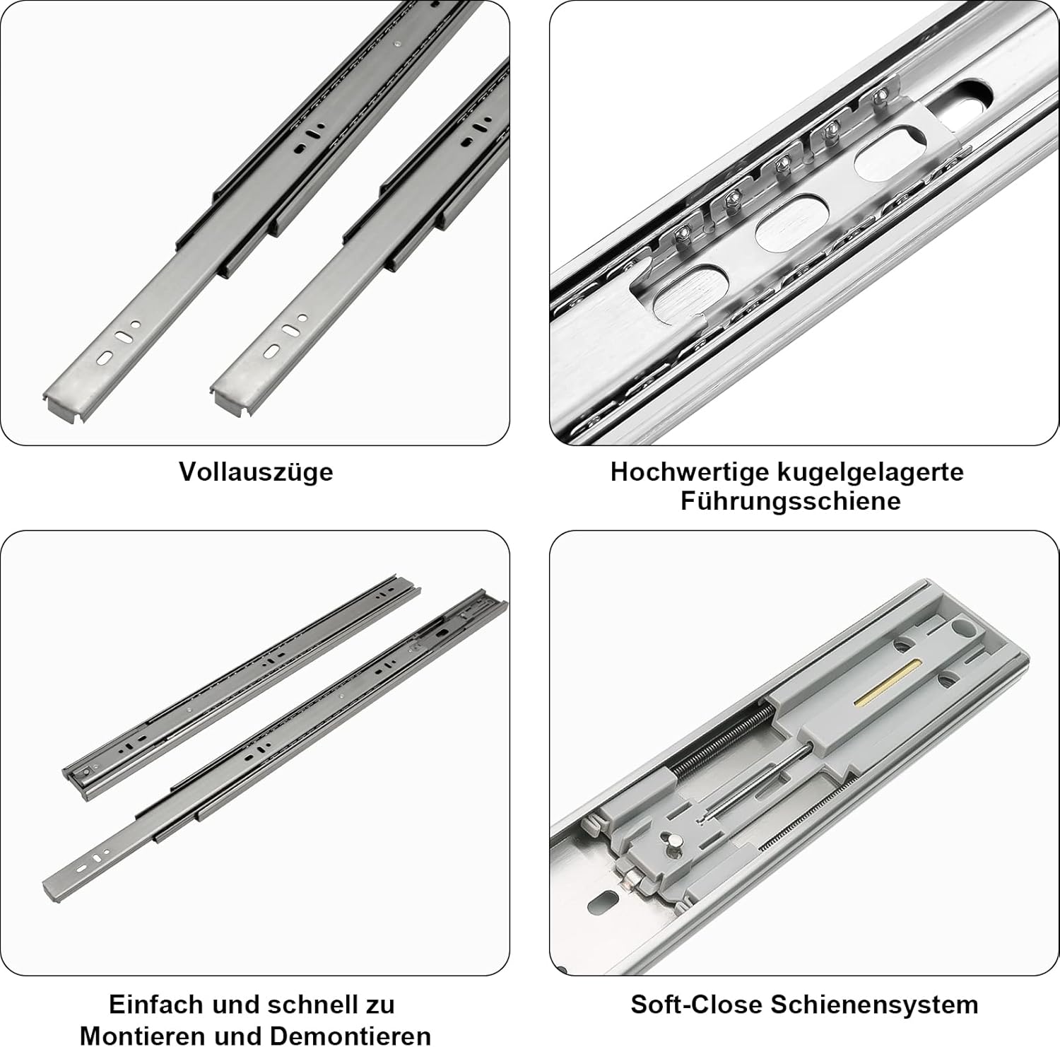 - 【Reibungslos und stabil】Die Schubladenauszüge verfügt über eingebaute Kugeln, leise schliessen, reibungslos und stabil schieben und ziehen.