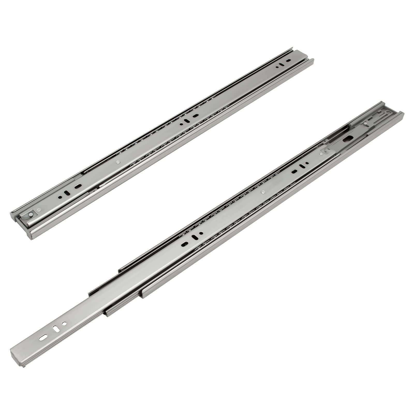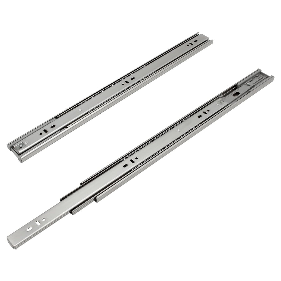 - 【Hochwertig】Dreiteilige Schubladenauszüge Grösse: Länge: 550 mm, Höhe: 45 mm, Breite: 12,7 mm, Starken Verzinkt Stahl,Tragkraft bis 35 KG( pro Paar ), langlebig, geeignet für alle Arten von Schubladen.