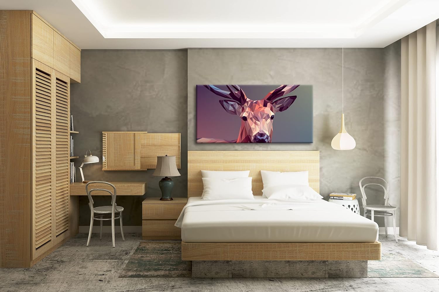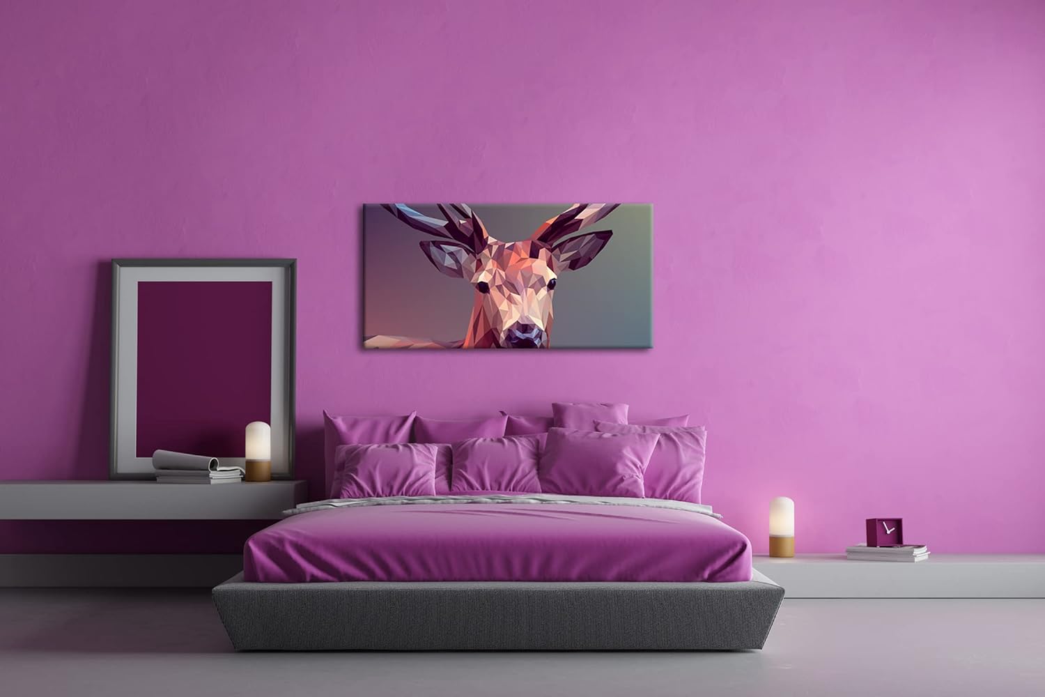 Illustration eines Hirsches Panorama 100x50 cm als Leinwandbild, Motiv fertig gerahmt auf Echtholzra
