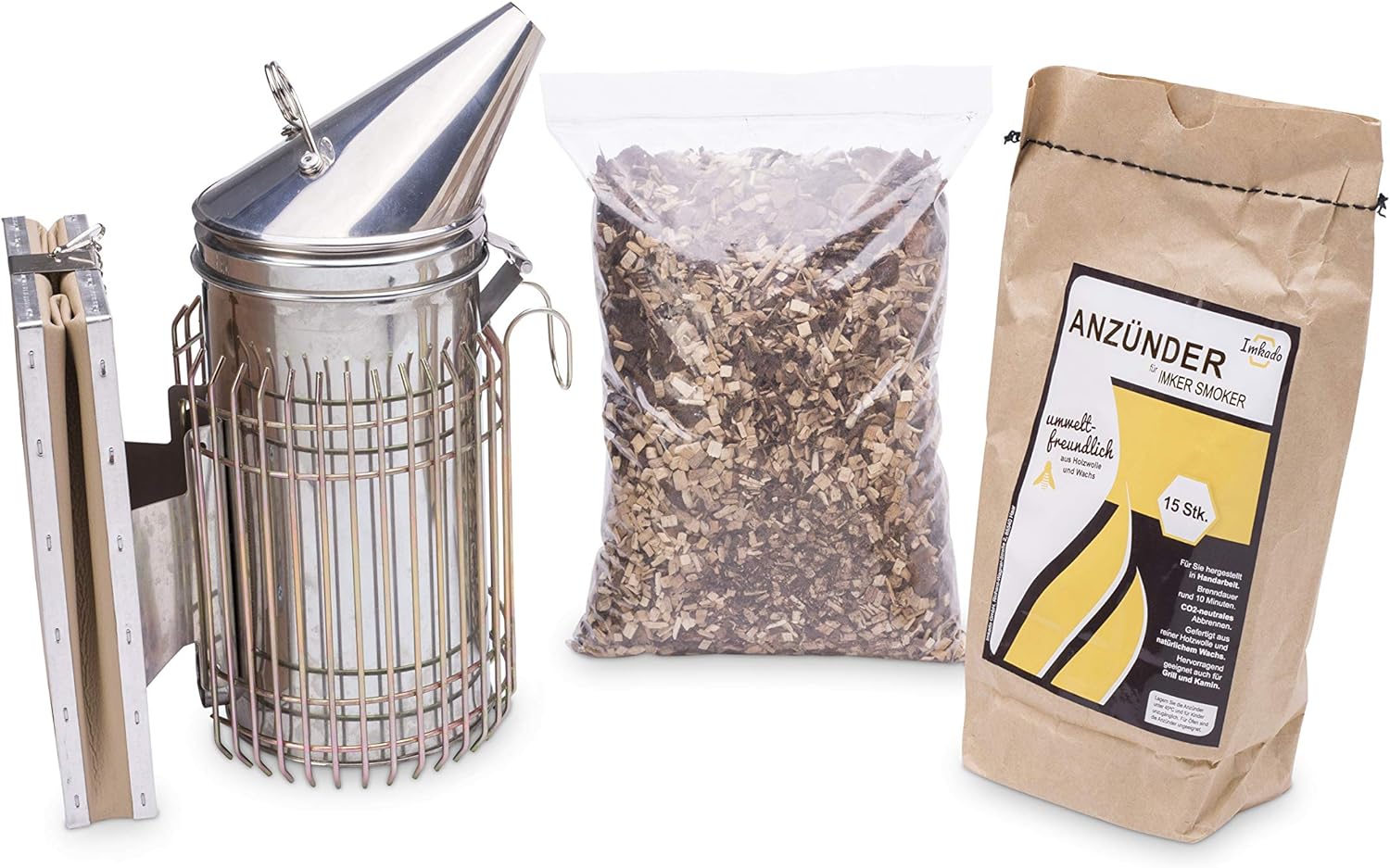 Imkado Imker Set M - Premium Edelstahl-Smoker, Rauchstoff, Anzünder - Ideal für Hobbyimker - Einstei