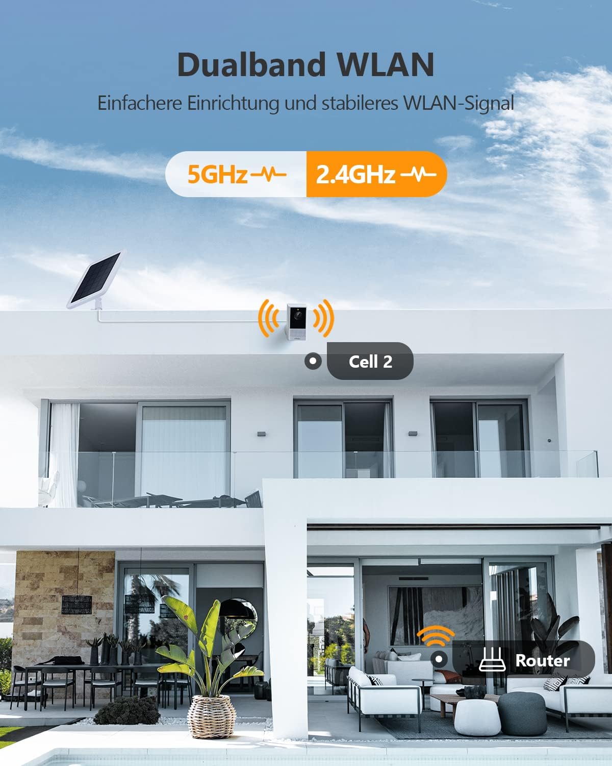 - 【2.5K Auflösung-Vollfarbkamera 24/7】2,4 GHz und 5 GHz WLAN 4MP ULTRA HD Glasoptik und eingebauter Projektor liefern bei Tag und Nacht scharfe, farbenfrohe Bilder ab bis zu 30m gute Nachtsicht. Kein Umschalten mehr von 5GHz auf 2,4GHz