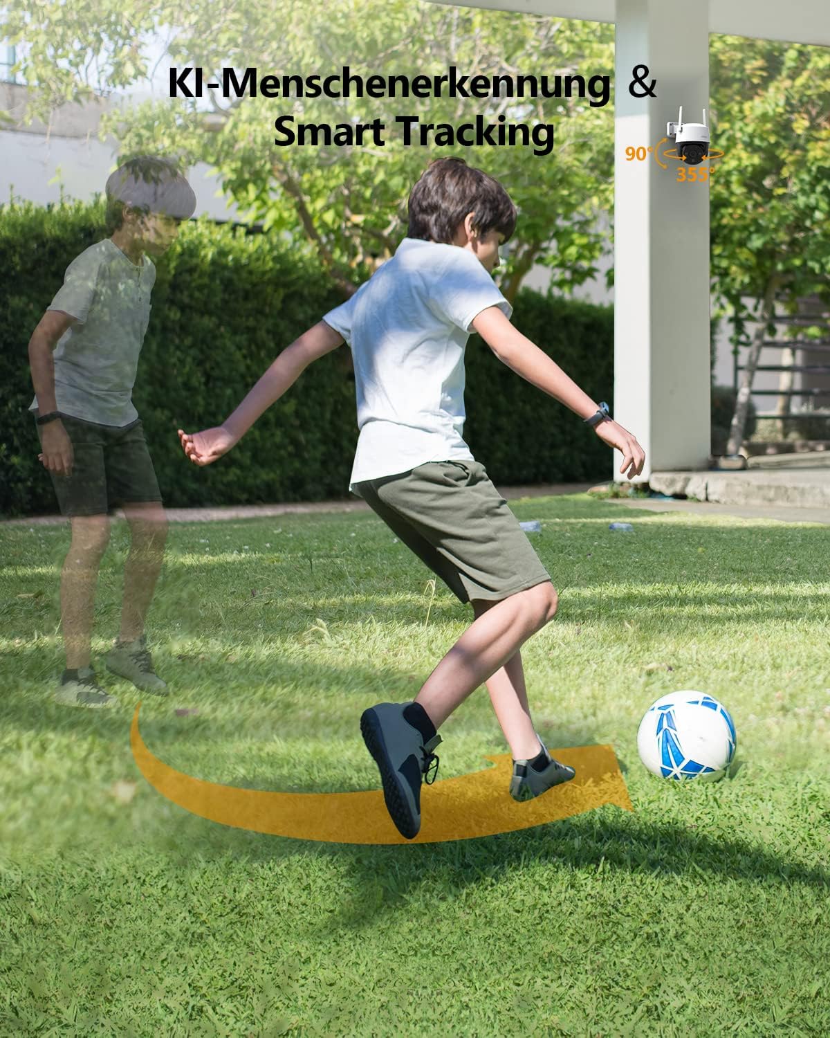 • 【AI Personen-/Fahrzeug-Erkennung & Automatische Verfolgung】Die neu aufgerüstete AI Personen-/Fahrzeug-Erkennung kann Fehlalarme, die durch Mücken/Baumschütteln verursacht werden, effektiv reduzieren. Wenn Ihre Kinder im Garten spielen, kann die