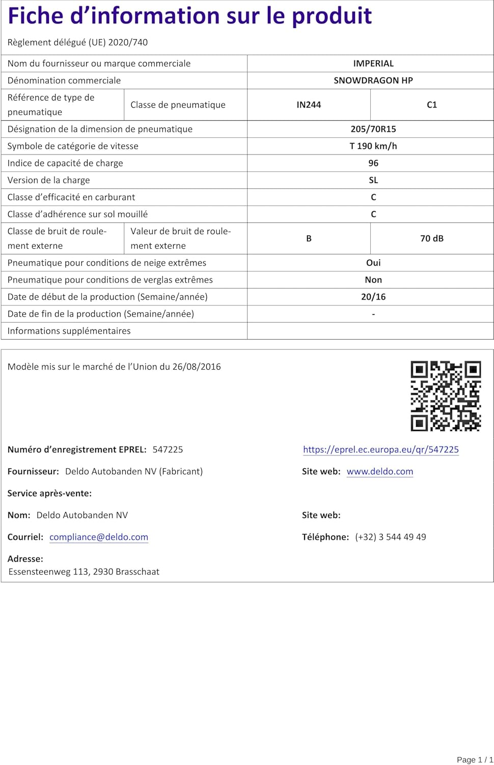 Imperial Snowdragon HP M+S - 205/70R15 96T - Winterreifen