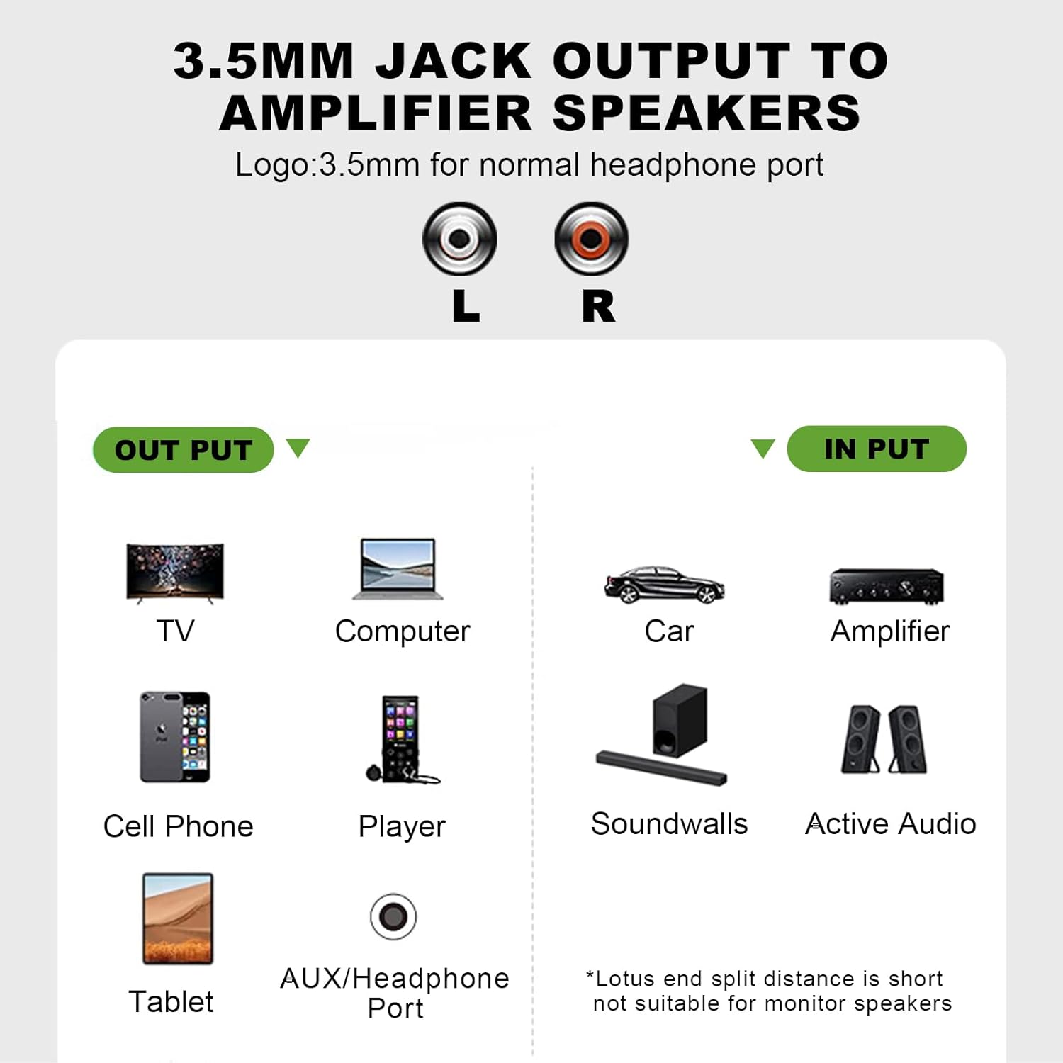 - 【Hohe Kompatibilität】Stecker der Standard-Parameter unterstützt alle 3,5 mm AUX zu 2RCA-Geräte, wie Telefon, mp3, Laptop, Verstärker.