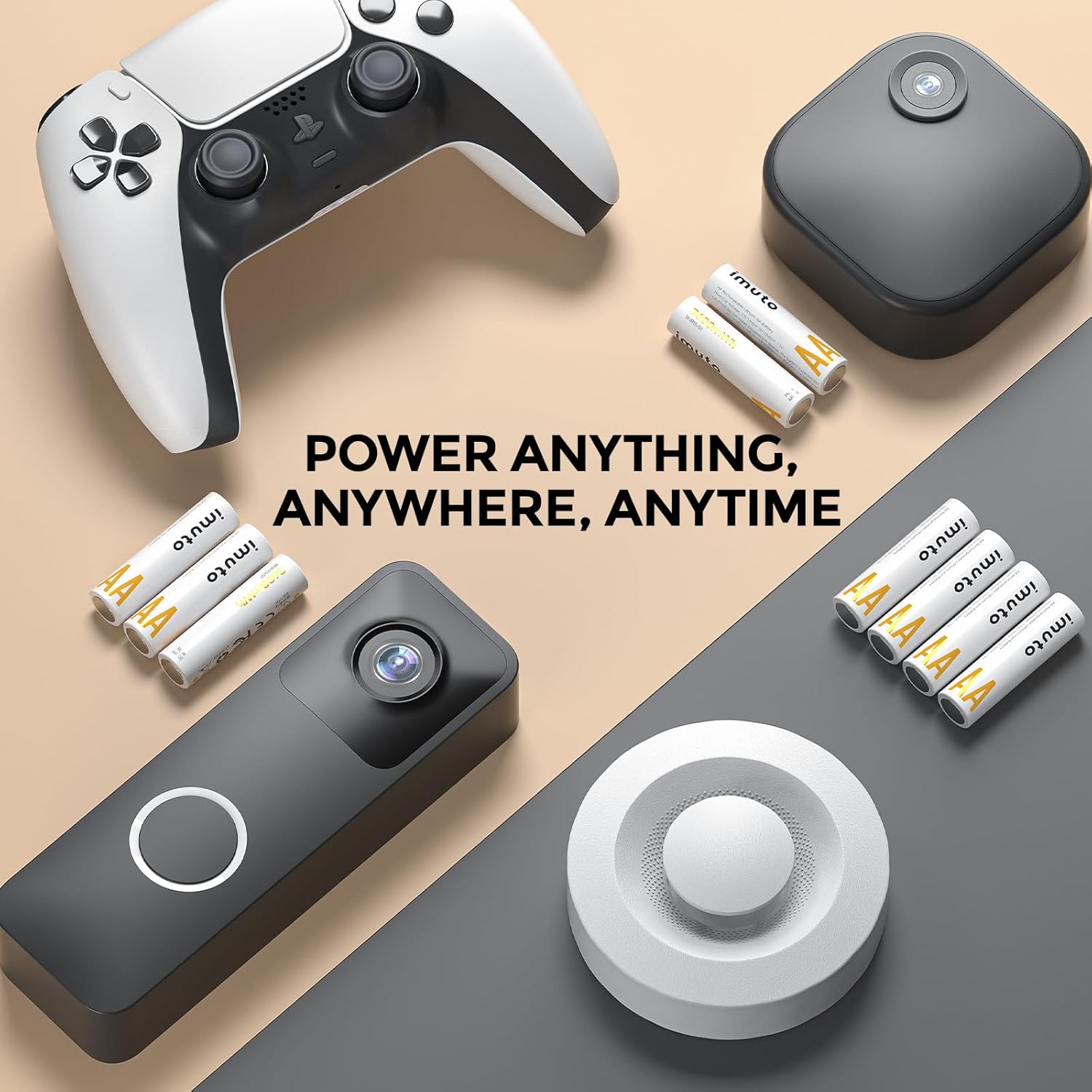 - 【Hohe Kapazität】Mit einer hohen Kapazität von 3000mWh und einer höheren Energiedichte speichern die wiederaufladbaren Lithium akkus von imuto effizient mehr Energie bei gleichem Volumen. Sie bieten eine stabile Stromversorgung von 1.5 V und eine