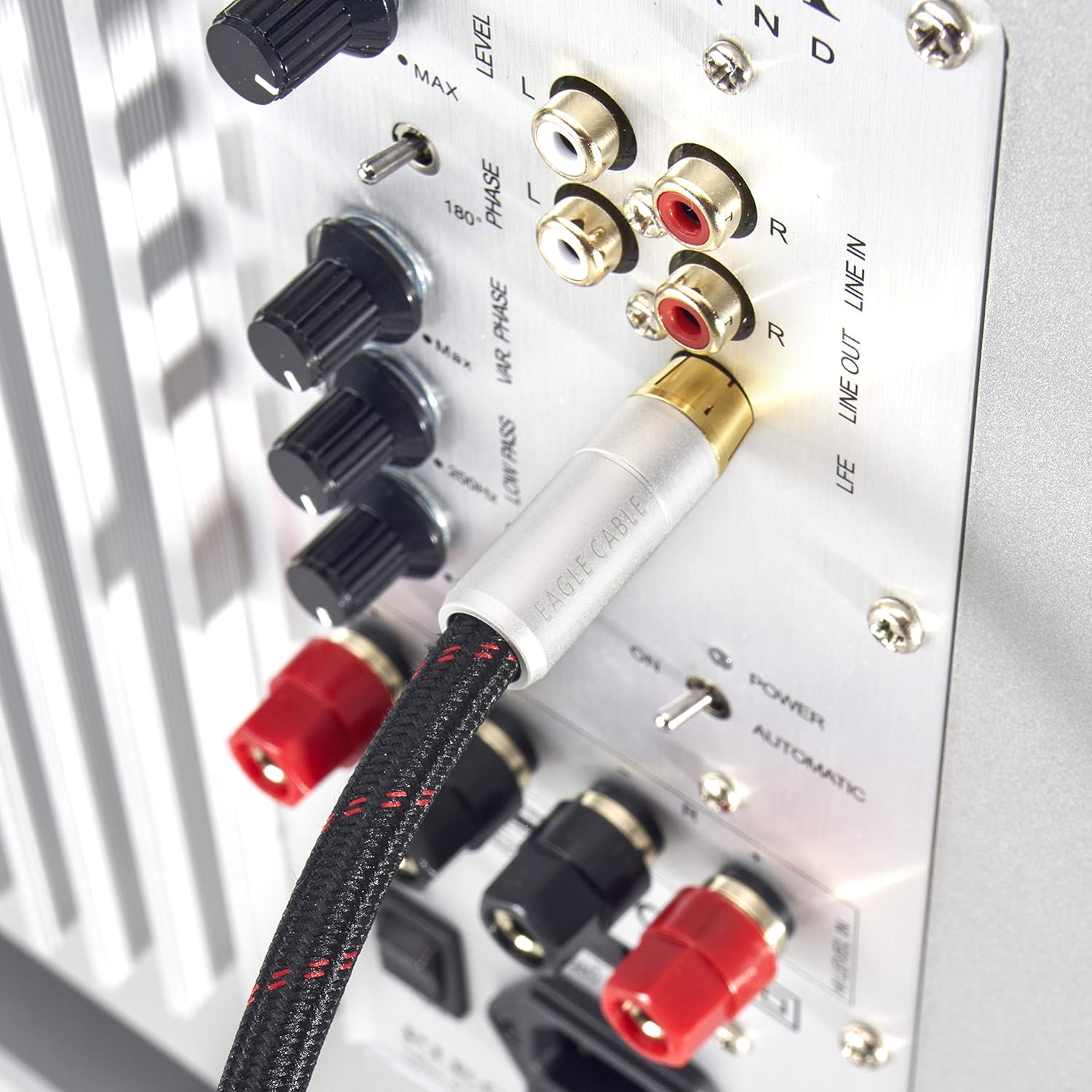 - HIGH SPEED LEITER: Das Eagle Cable High End Deluxe Subwooferkabel verfügt über feine Signallitzen, bei denen jeder einzelne Draht mit einer Lackschicht versehen ist. Diese Lackschicht isoliert die Drähte voneinander, sodass eine grössere effektive