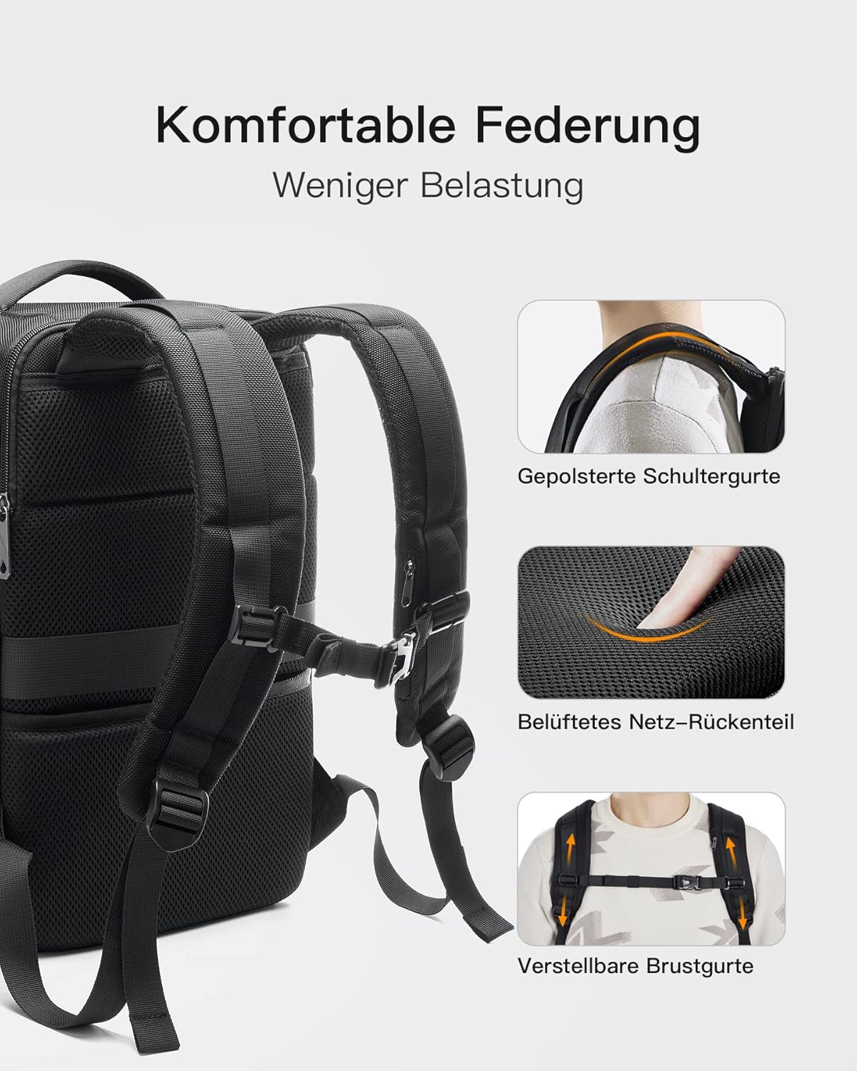- 3 Tragemöglichkeiten: Dies ist nicht nur ein Reiserucksack, sondern auch ein robustes Handgepäck. Mit dem Trolley-Gurt auf der Rückseite können Sie die Tasche auch an den Griffen eines Koffers befestigen.