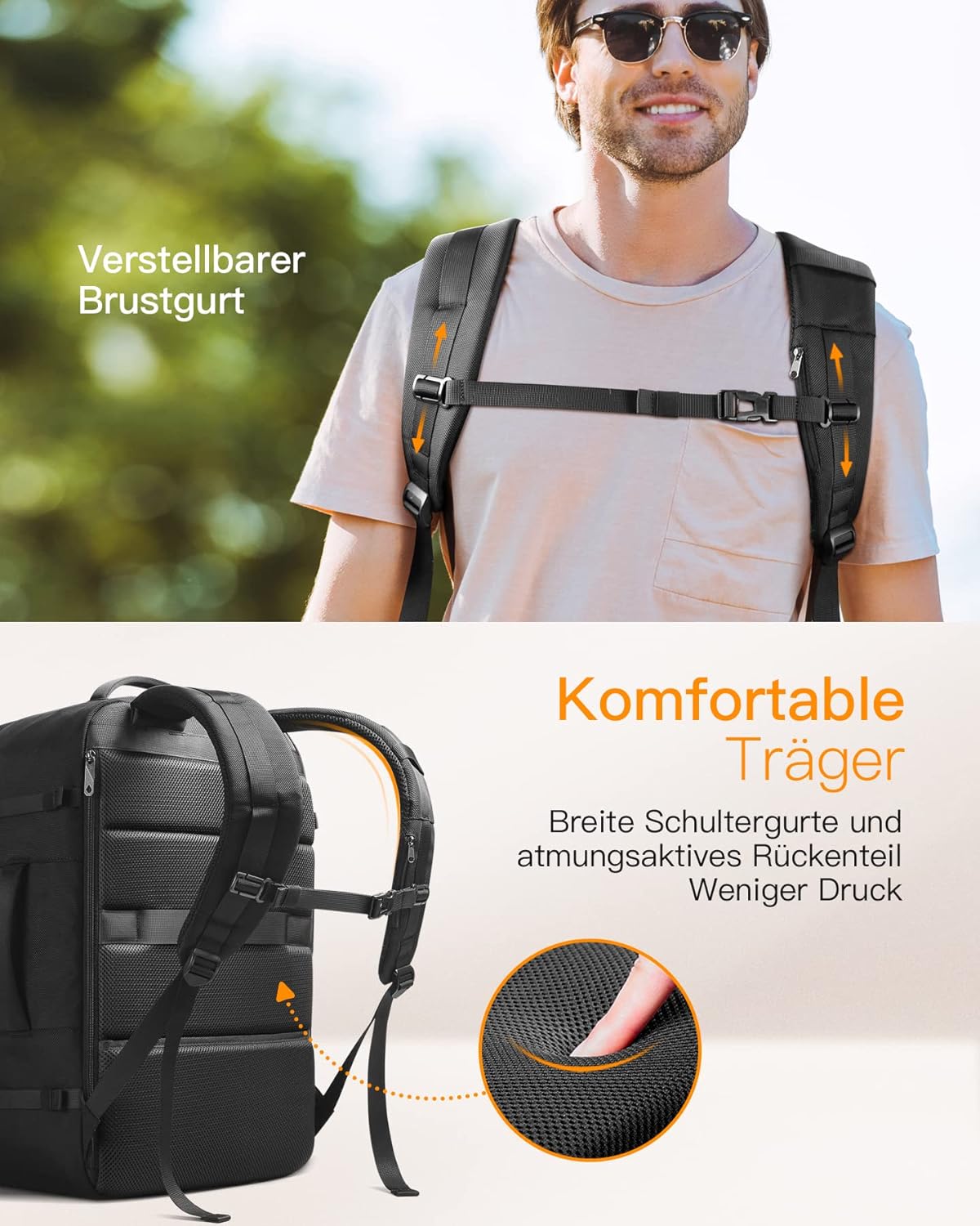 - Carry-On Kabinengrösse: Mit einer Grösse von 55 cm * 35 cm * 22 cm entspricht dieser Rucksack den Handgepäckanforderungen vieler Fluggesellschaften. Hinweis: Bitte informieren Sie sich vor Ihrer Reise bei Ihrer Fluggesellschaft über die genauen