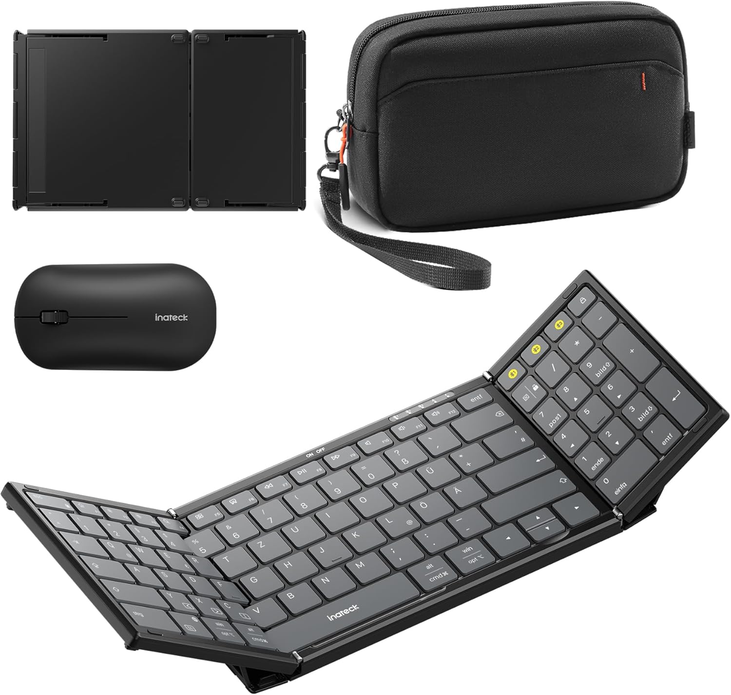 Inateck Faltbare Tastatur Maus Set Kabellos,Klappbare Tastatur mit Ziffernblock mit 3 Kanälen,mit St