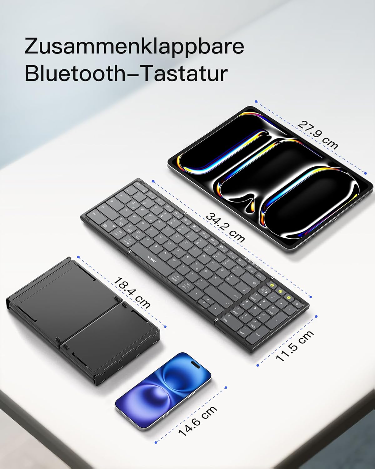 • Full-Size Klapptastatur: Mit Vollfunktionales Layout auf PC-Niveau,Die Tastatur verfügt über sechs Reihen Haupttastenbereiche, um verschiedene Anforderungen an Tastenkombinationen zu erfüllen. Die Tastatur in voller Grösse verfügt über insgesamt 99